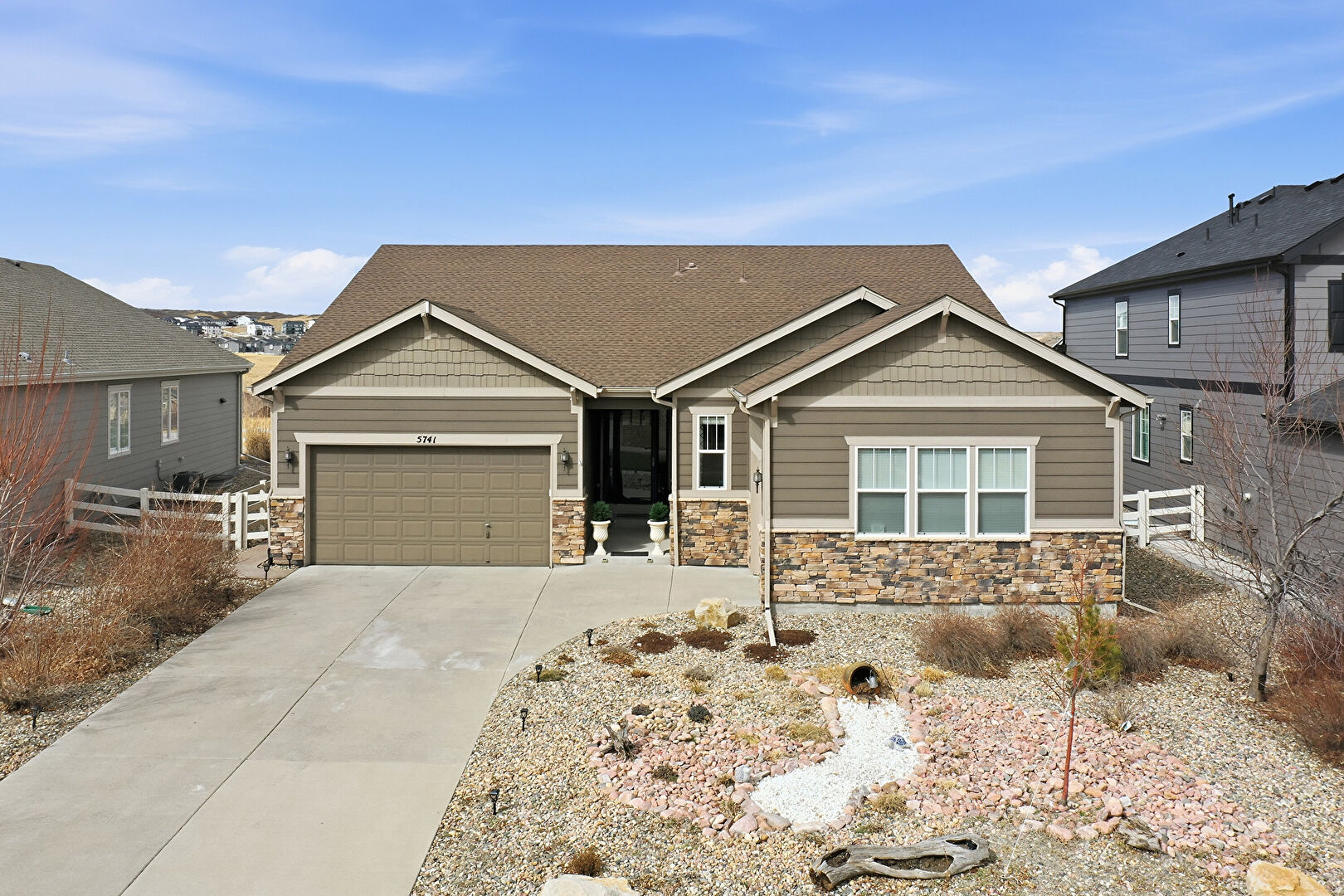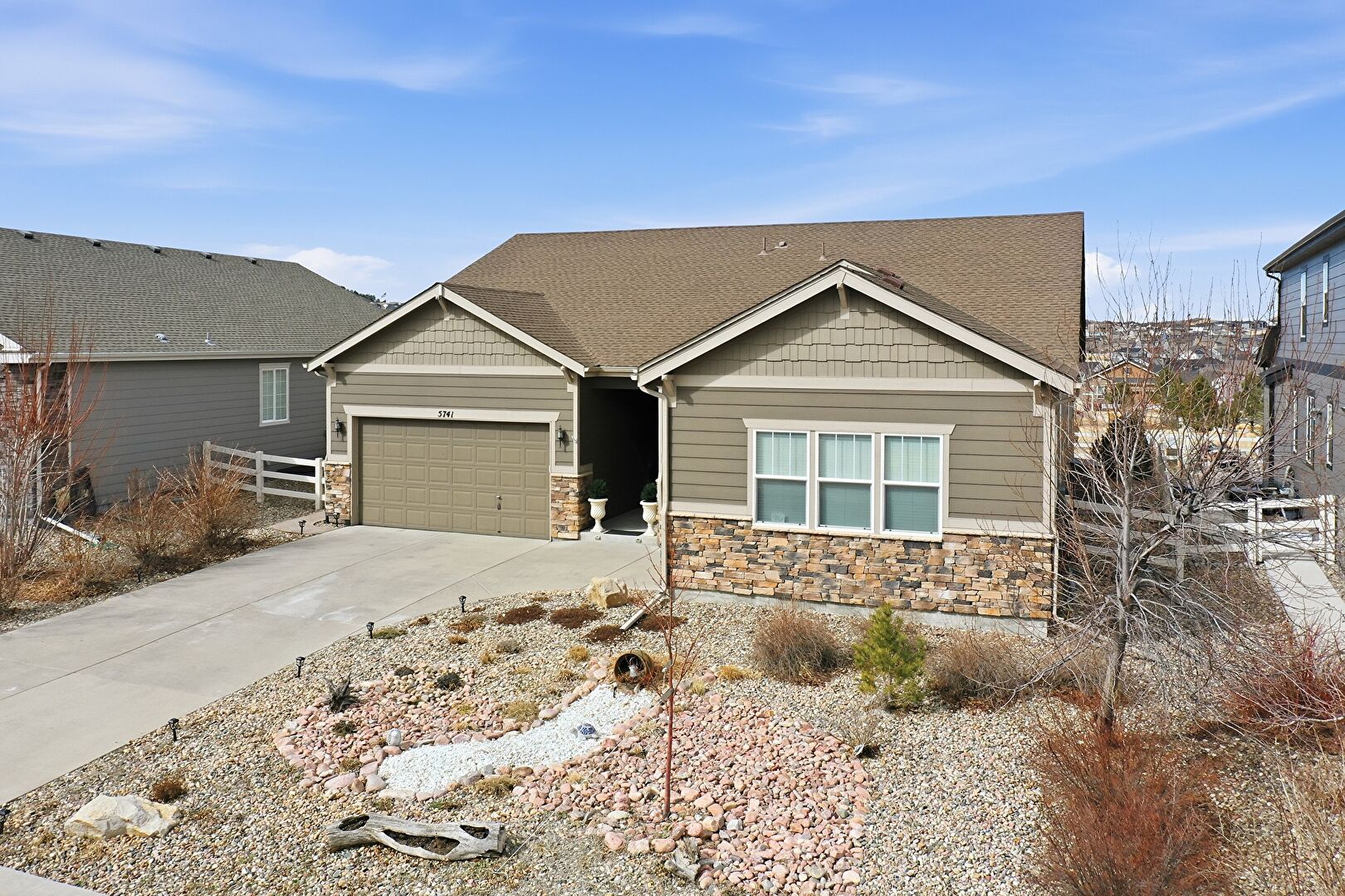 Concrete Foundation, Downspout, Driveway, Electric Meter, Fence, Gutters, Horizontal Siding, Shake Shingle Siding, Stone Siding, Water Meter, Concrete Foundation, Driveway, Gutters, Horizontal Siding, Shake Shingle Siding, Stone Siding