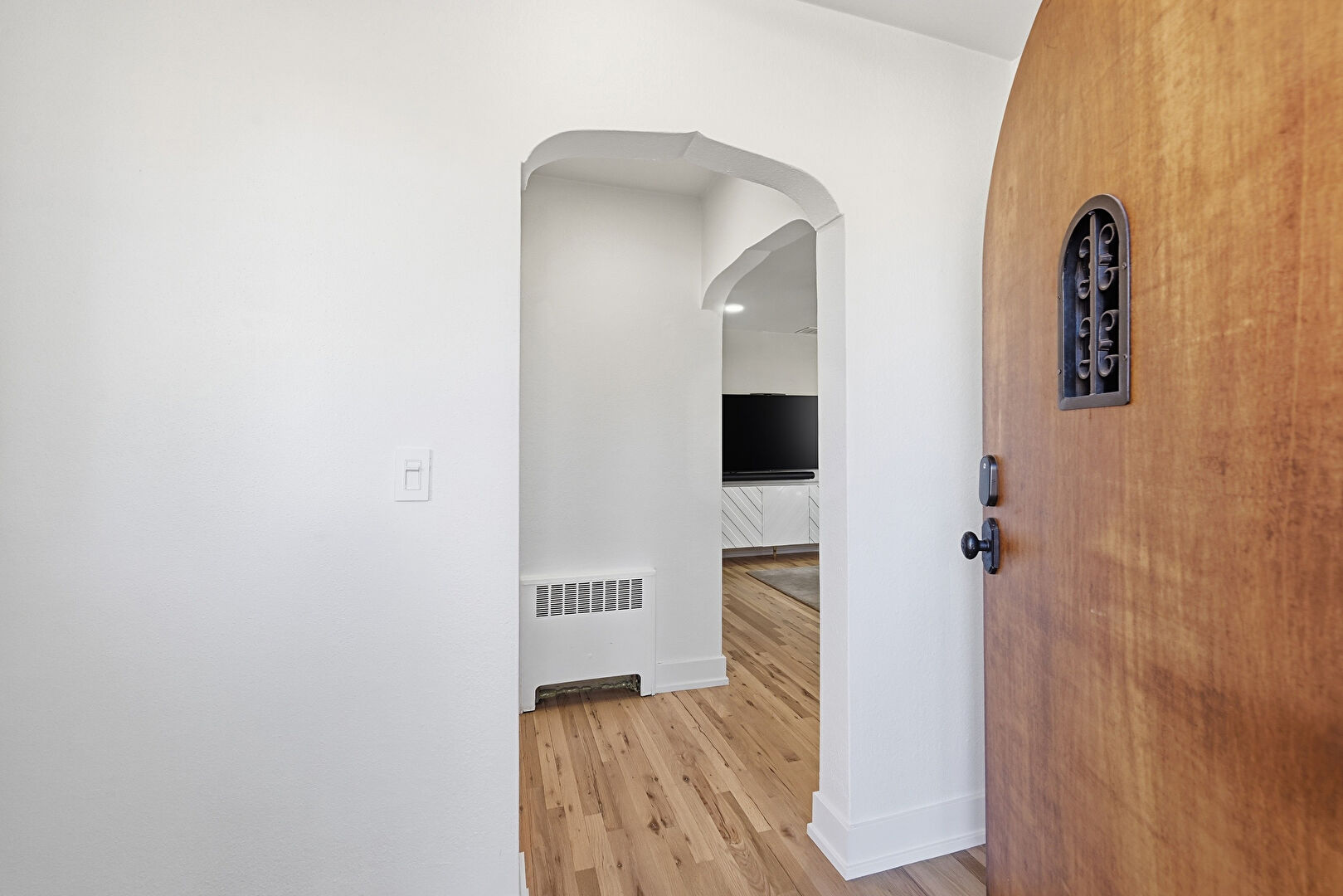 Arched Walkways, Drywall, Radiator, Wood Finish Floor, Baseboards Wall
