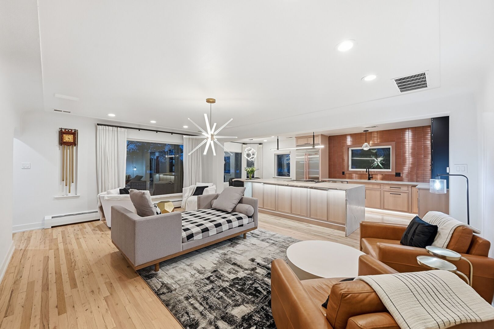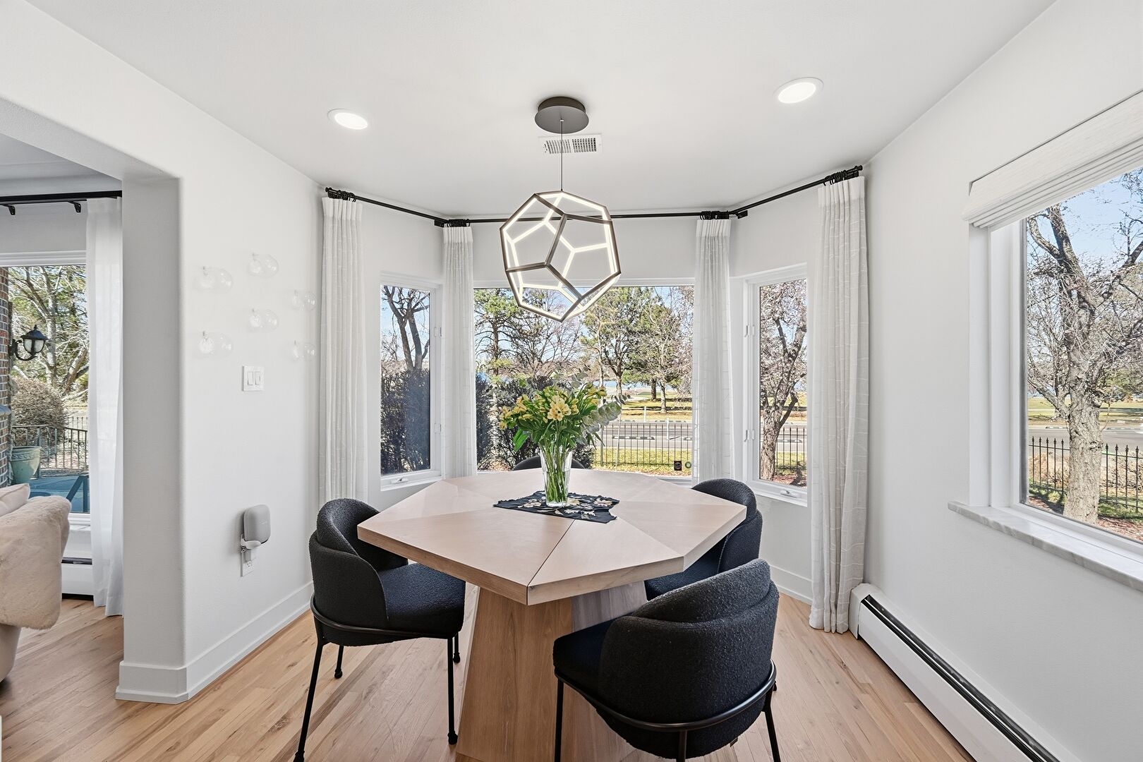 Baseboard Radiator, Baseboards Wall, Drywall, Natural Light, Notable Chandelier, Recessed Lighting, Vent, Wood Finish Floor, Drywall, Recessed Lighting