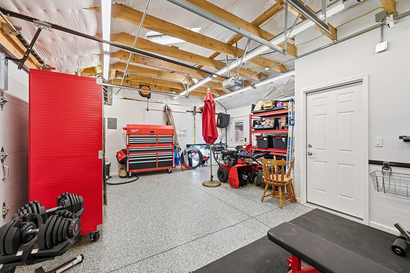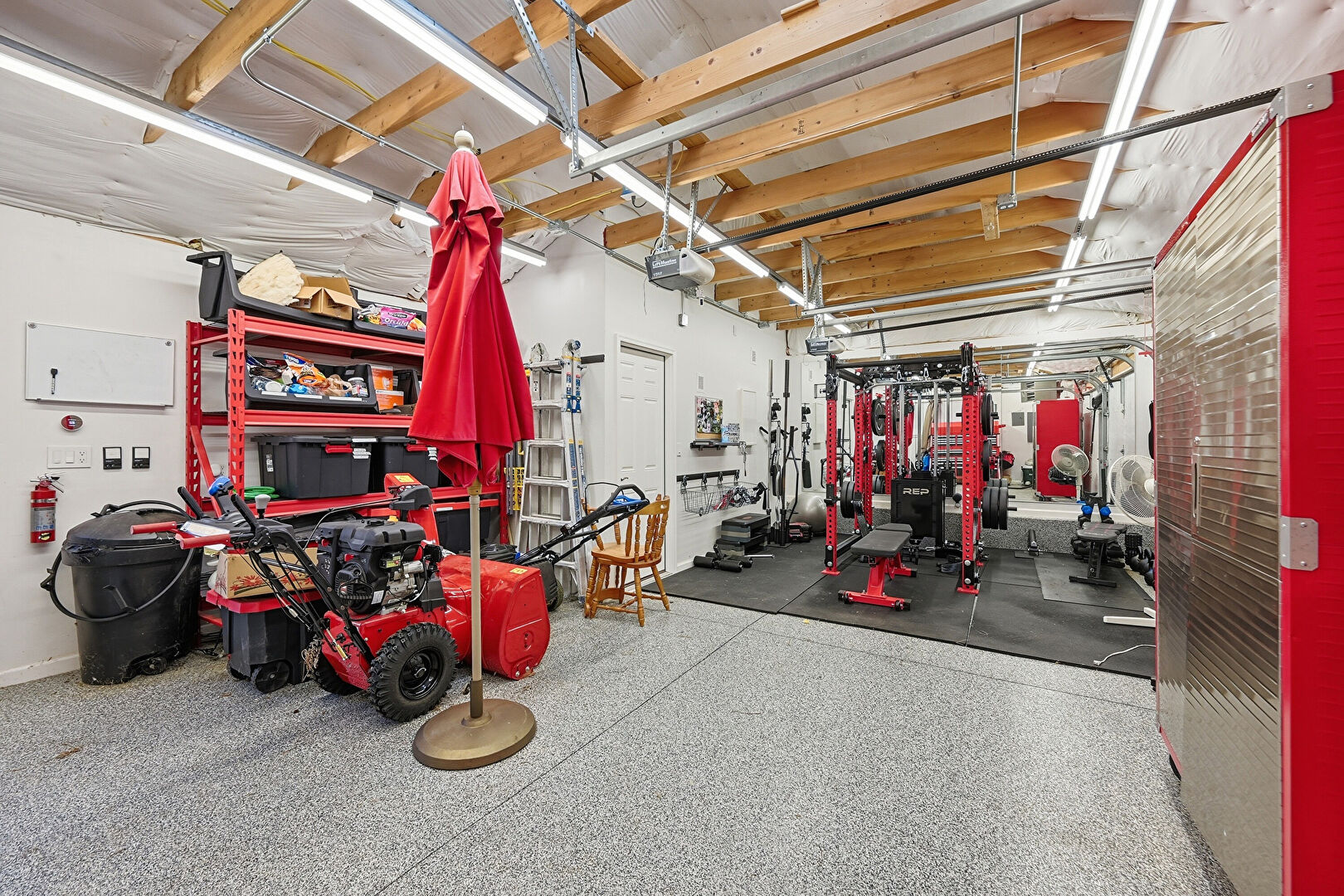 Detached Garage, Drywall, Electric Panel, Fence, Garage, Garage Door Opener, Fire Extinguisher, Garage Door Opener, Gate