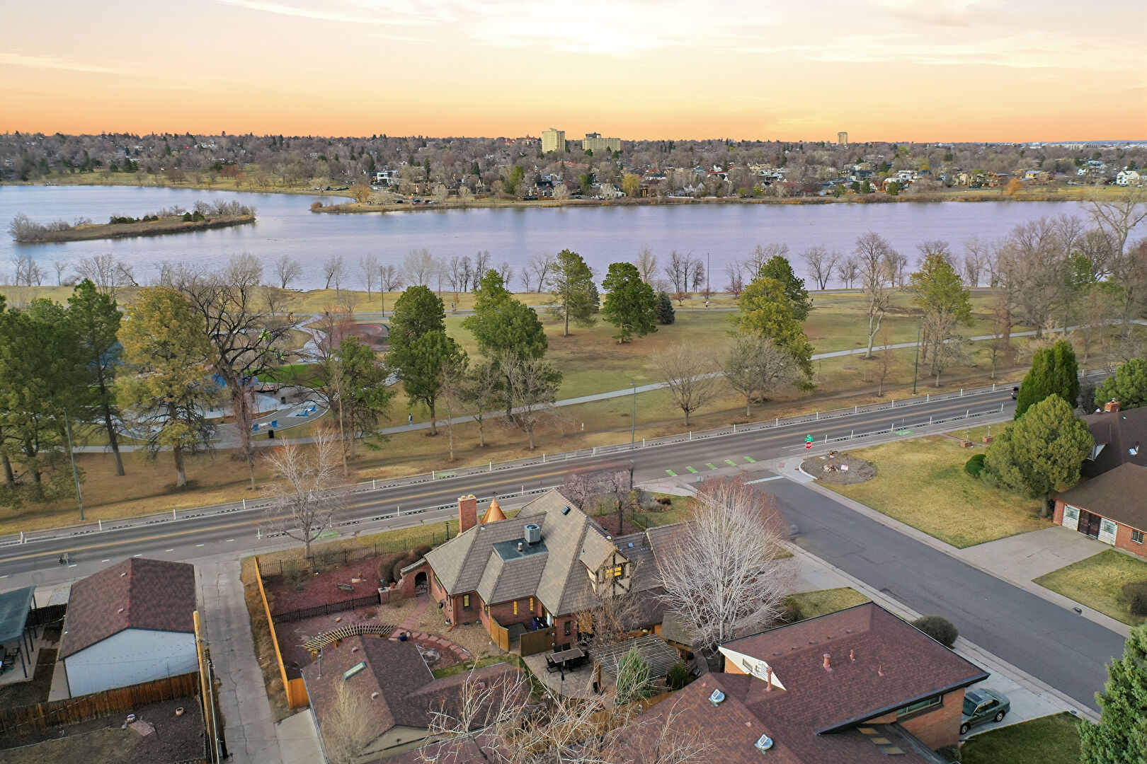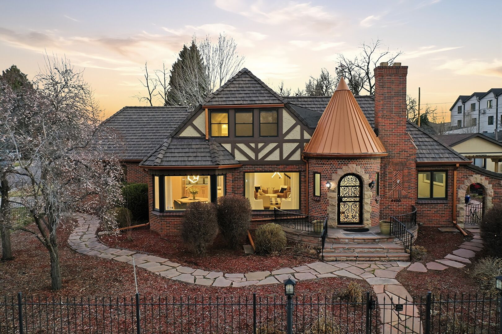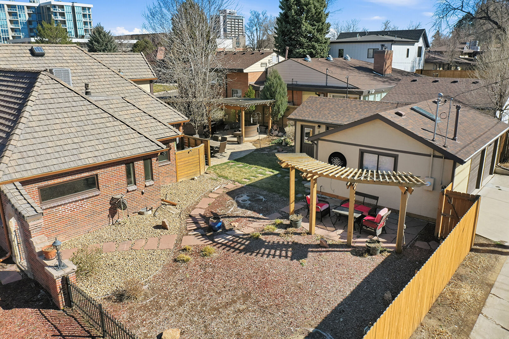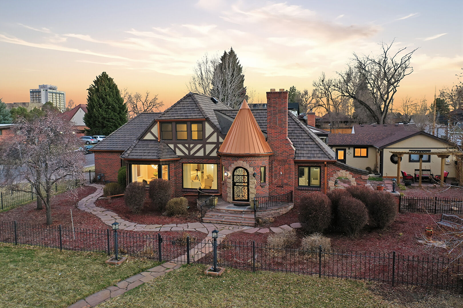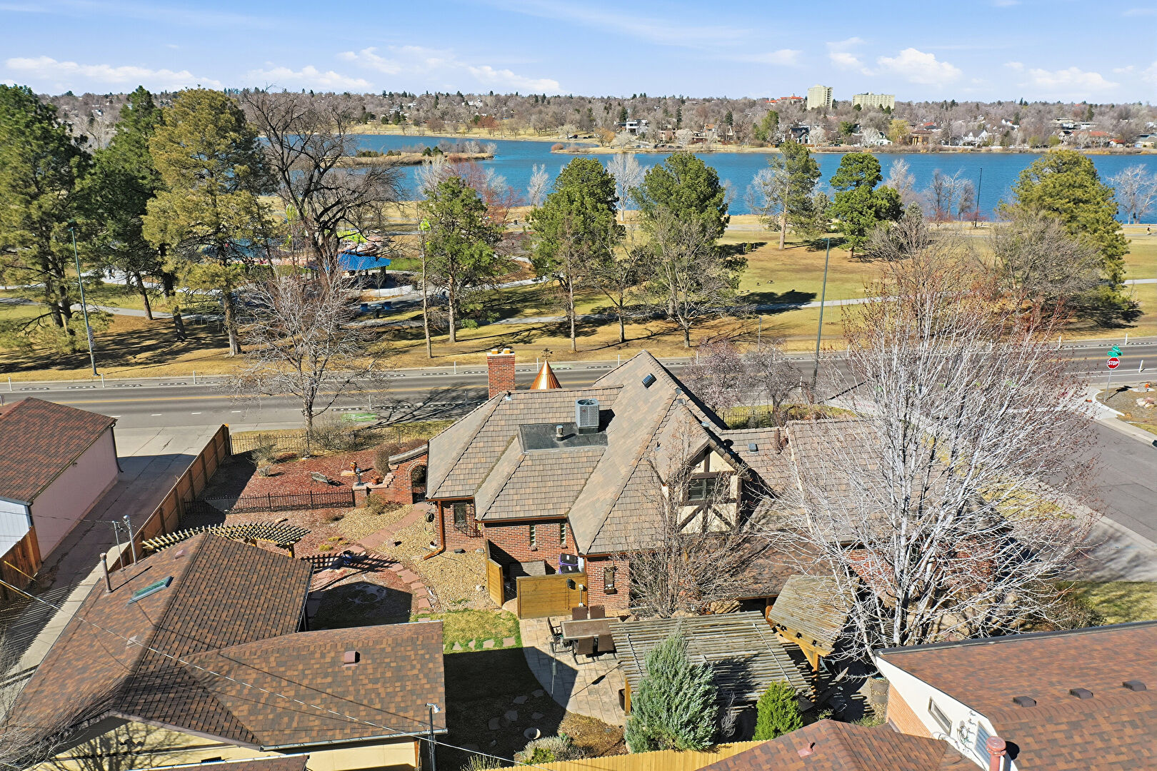 Brick Siding, Chimney, Downspout, Fence, Metal Roof, Patio