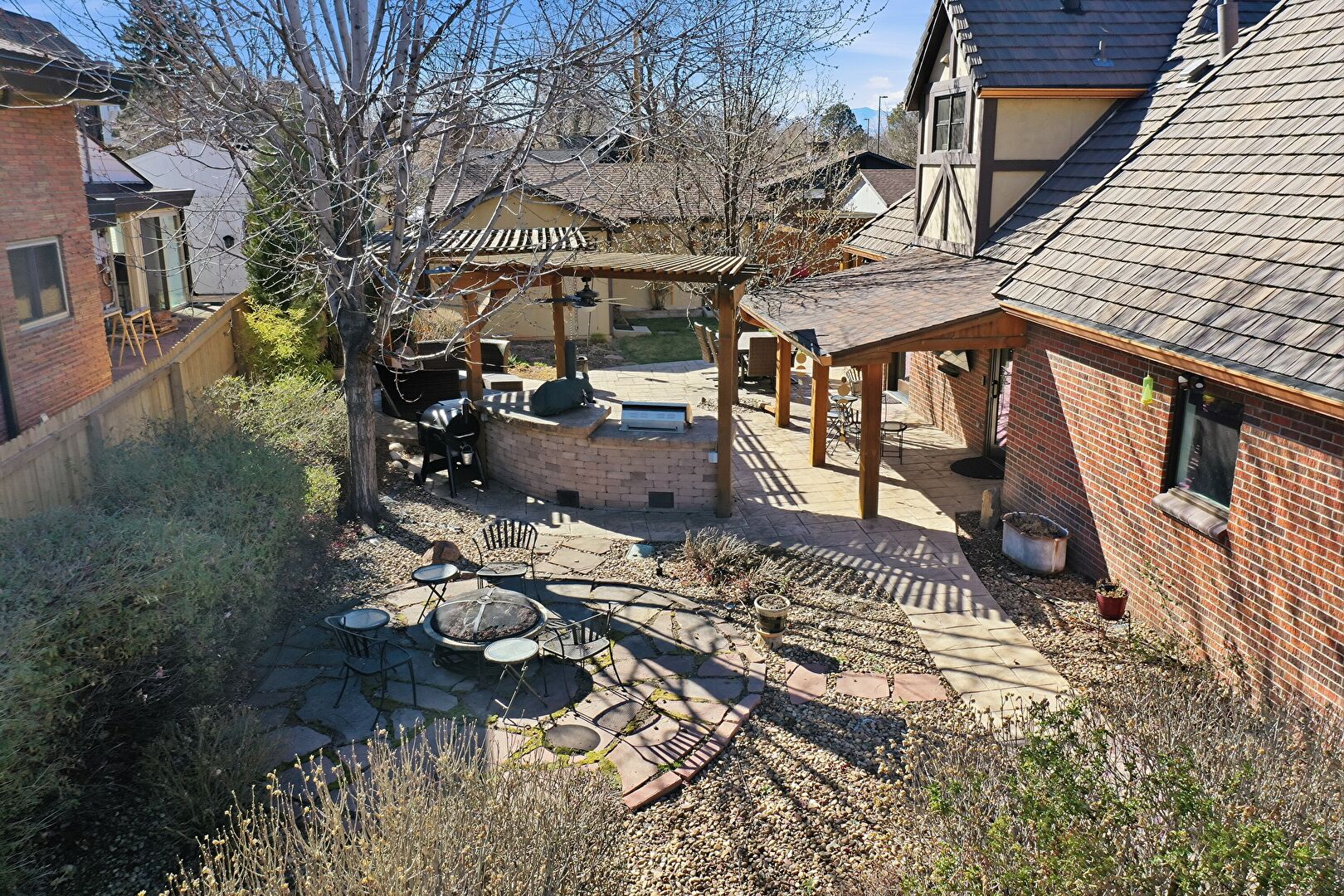 Central Ac, Fence, Fire Pit, Gazebo, Lawn, Outdoor Bar, Patio, Pergola, Residential View, Fence, Outdoor Kitchen, Pergola