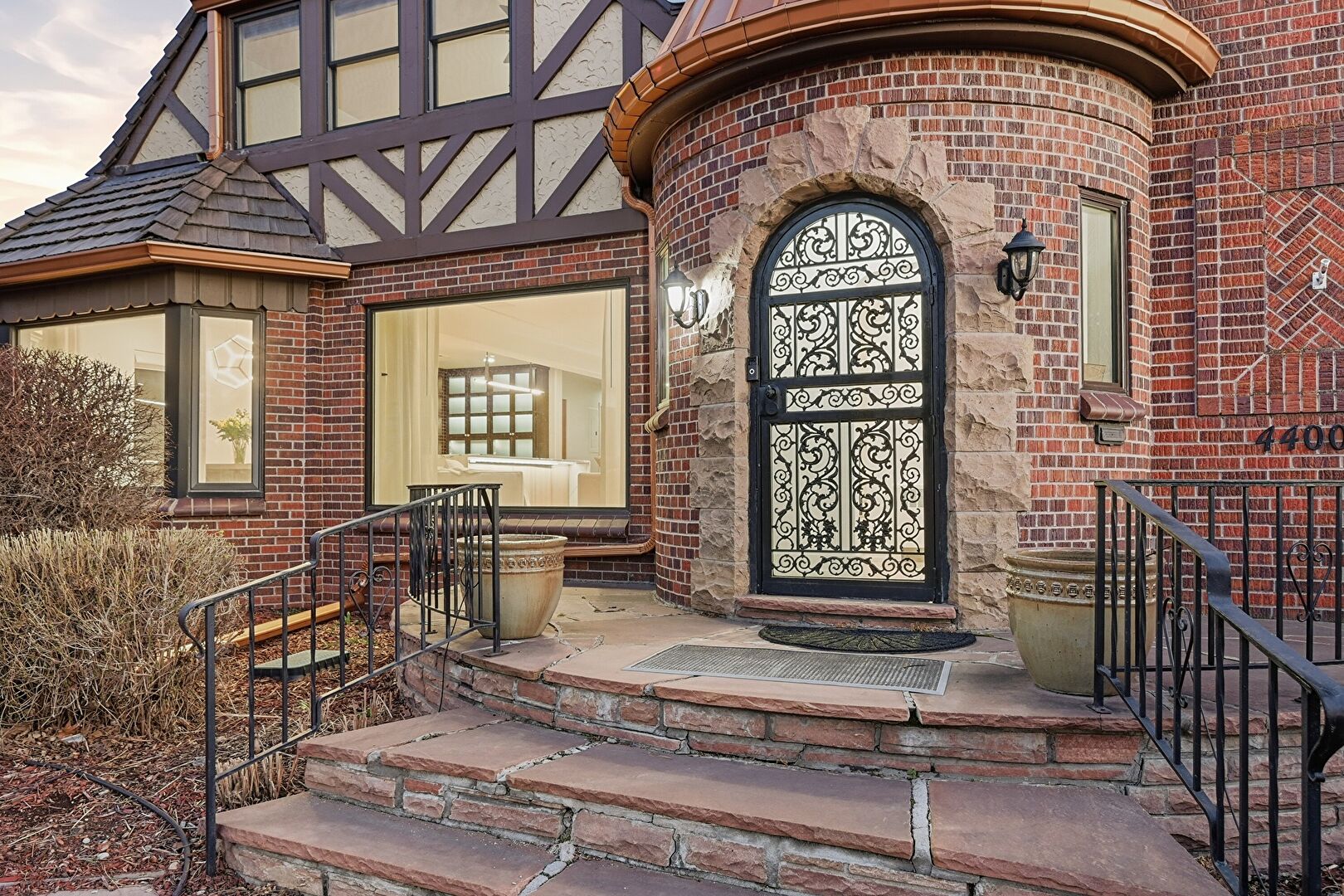 Arched Walkways, Baseboard Radiator, Brick Siding, Chimney, Downspout, Drywall, Fence, Gate, Natural Light, Patio, Recessed Lighting, Stoop, Stucco Siding, Vent, Gutters, Wood Finish Floor