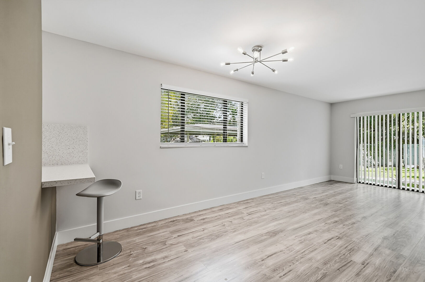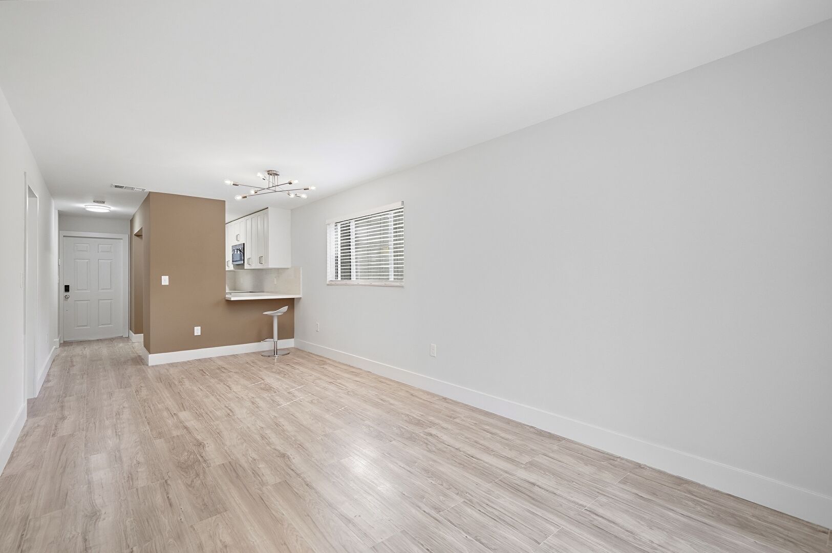 Baseboards Wall, Drywall, Natural Light, Notable Chandelier, Vent, Wood Finish Floor, Natural Light, Notable Chandelier