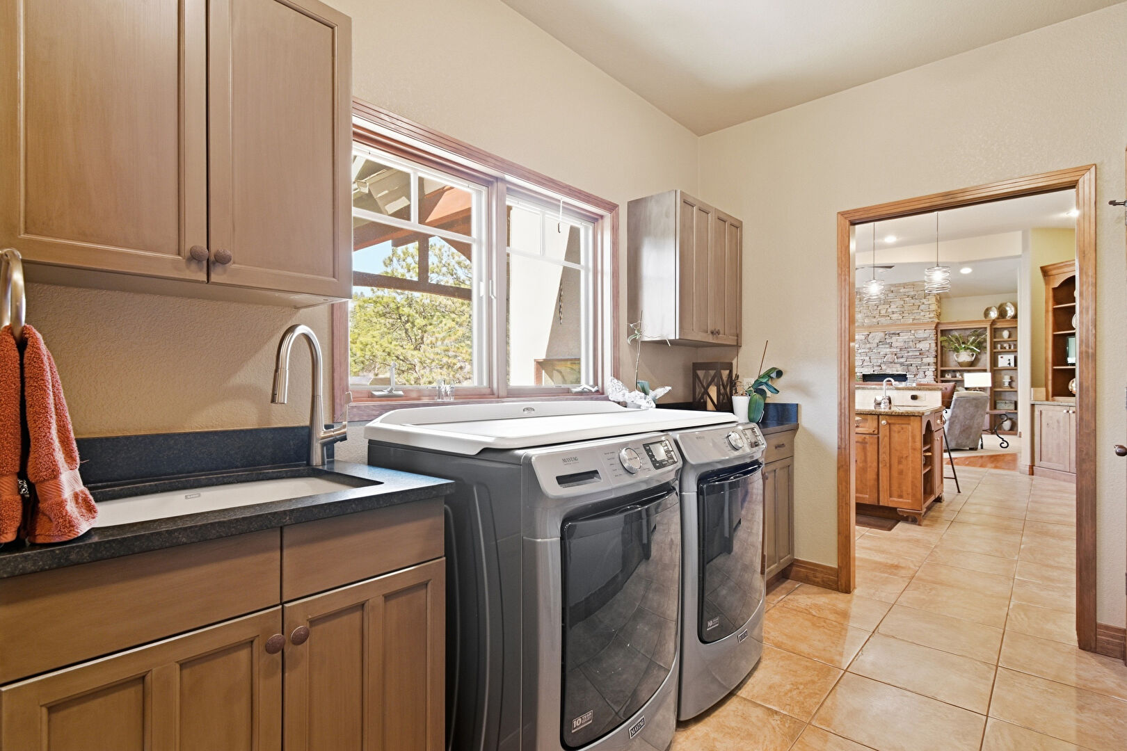 Drywall, Laundry, Natural Light, Tile Floor, Baseboards Wall