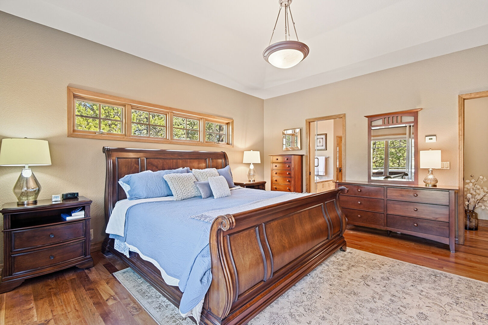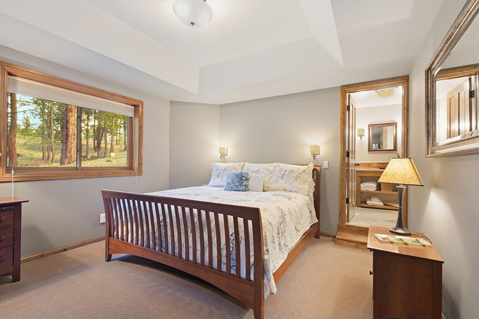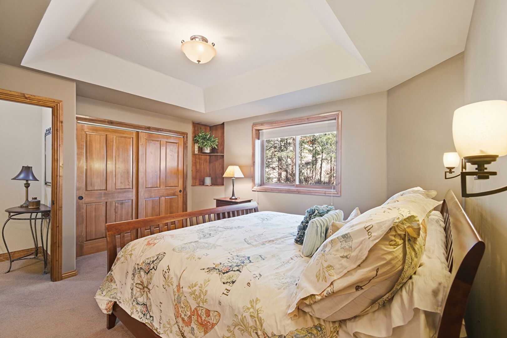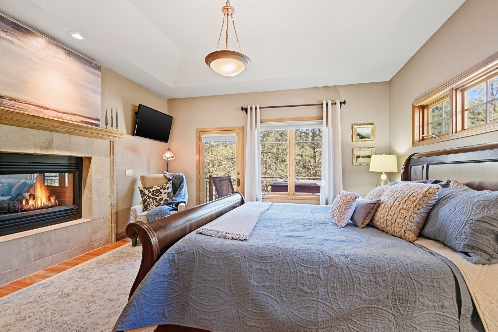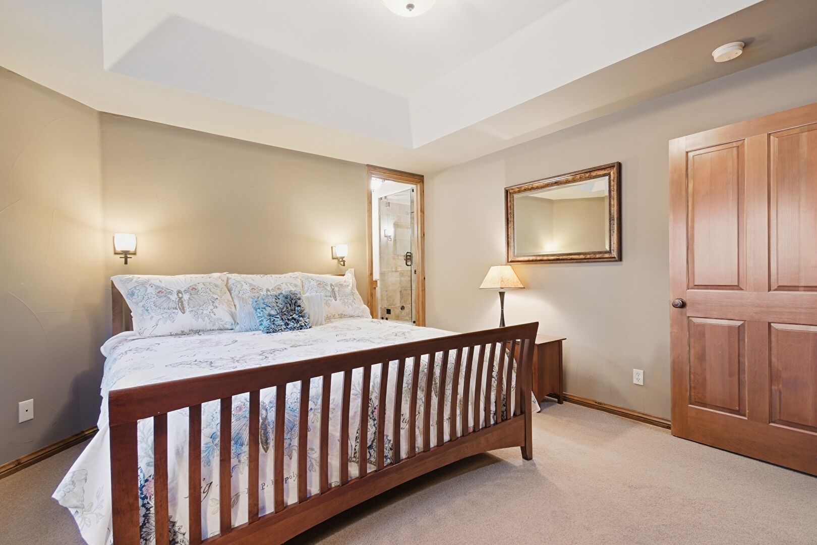 Access To Exterior, Baseboards Wall, Carpet, Closet, Drywall, Fireplace, Natural Light, Recessed Lighting, Smoke Carbon Monoxide Detector, Tray Ceiling, Wood Finish Floor, Access To Exterior, Baseboards Wall, Carpet, Tray Ceiling, Wood Finish Floor