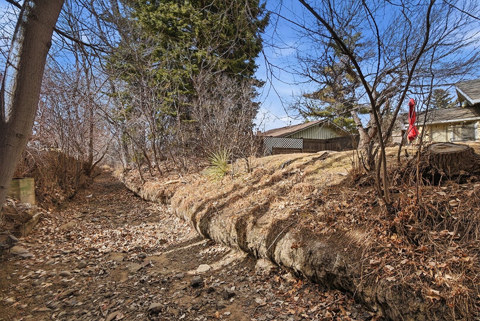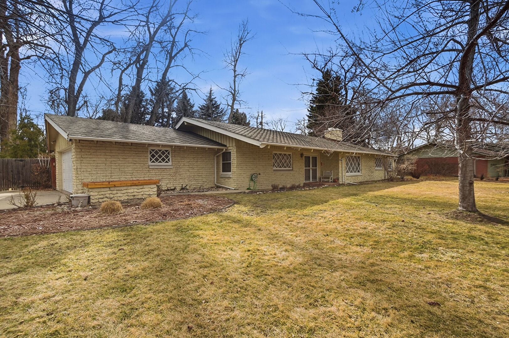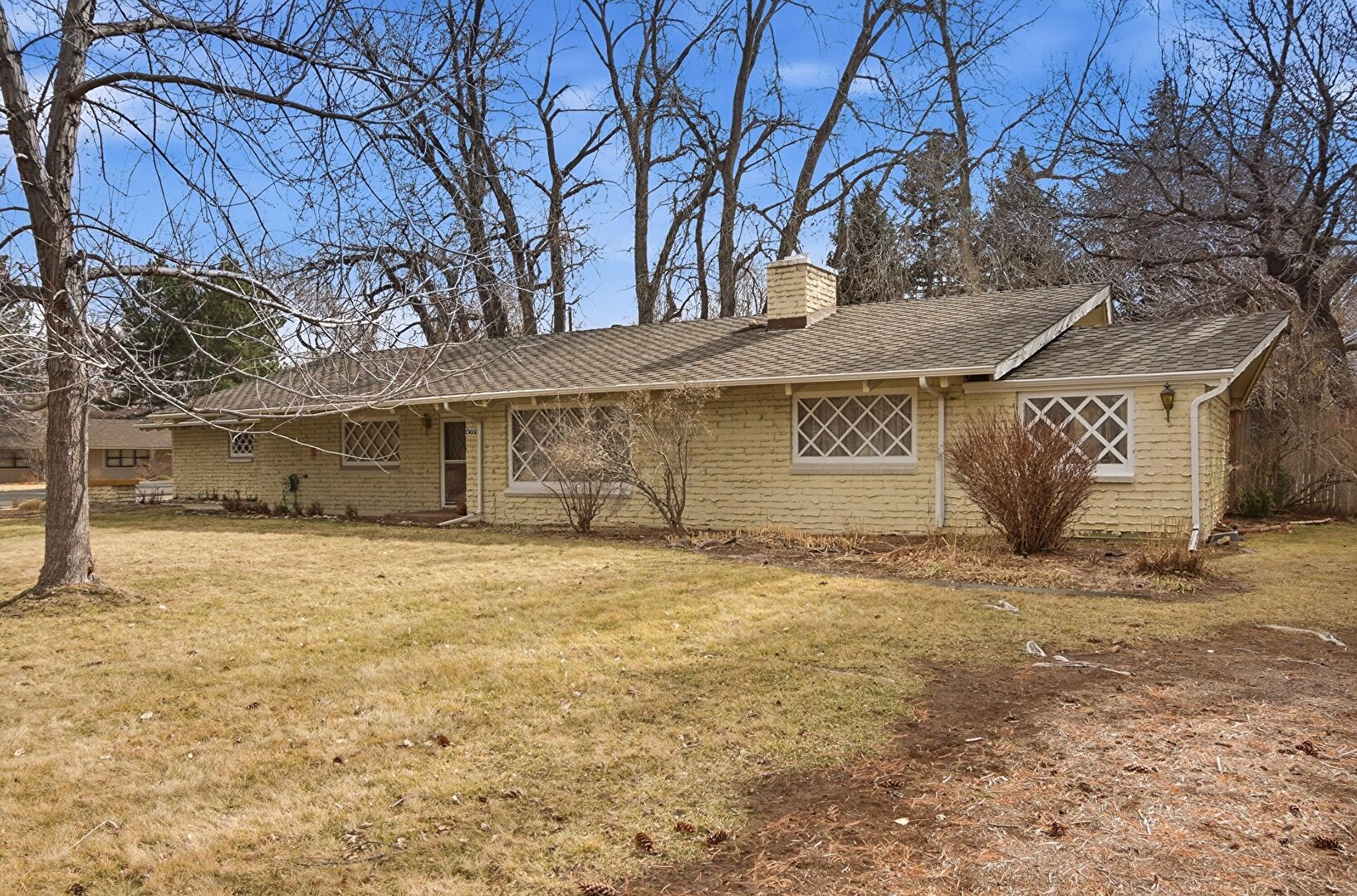 Brick Siding, Chimney, Downspout, Driveway, Fence, Gutters, Lawn, Patio, Porch, Shingle Roof, Vertical Siding, Brick Siding, Chimney, Lawn