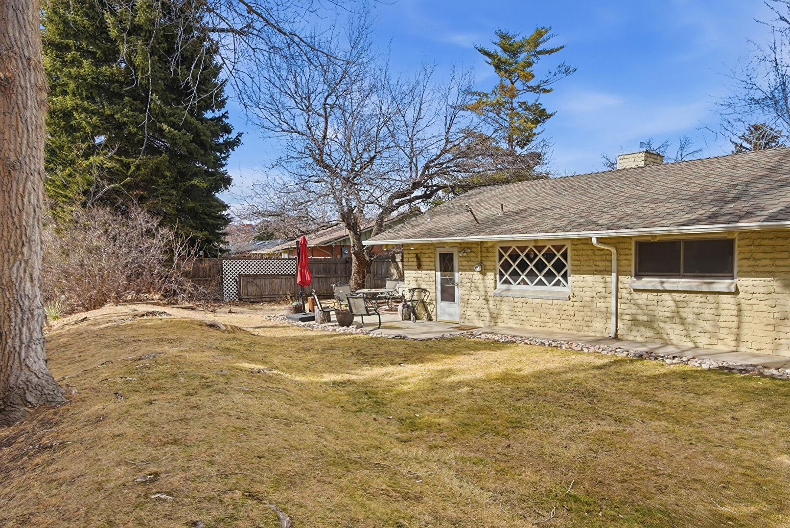 Brick Siding, Lawn, Patio, Shingle Roof, Vertical Siding, Fence