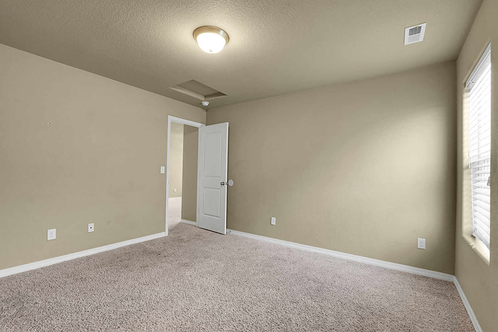 Baseboards Wall, Carpet, Drywall, Natural Light, Scuttle, Textured Ceiling, Vent, Baseboards Wall, Drywall
