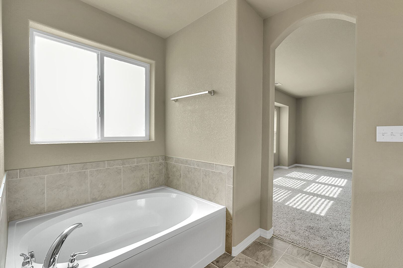Arched Walkways, Baseboards Wall, Carpet, Drywall, Natural Light, Textured Ceiling, Textured Wall, Baseboards Wall, Carpet, Textured Ceiling, Vent