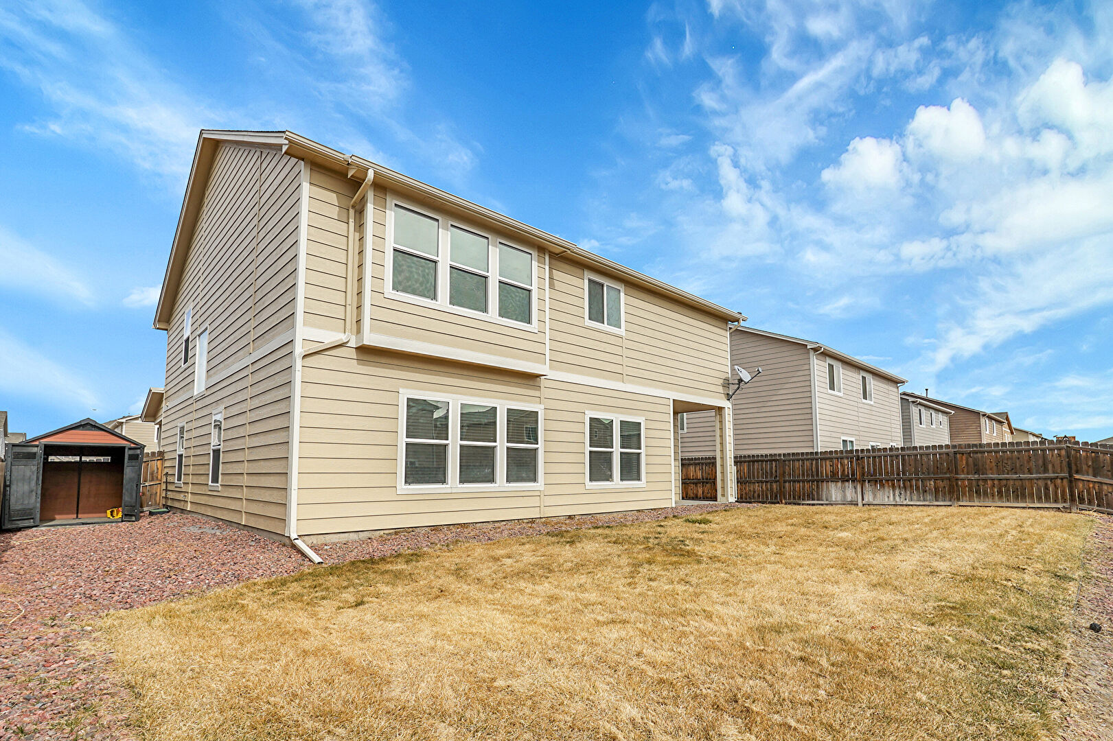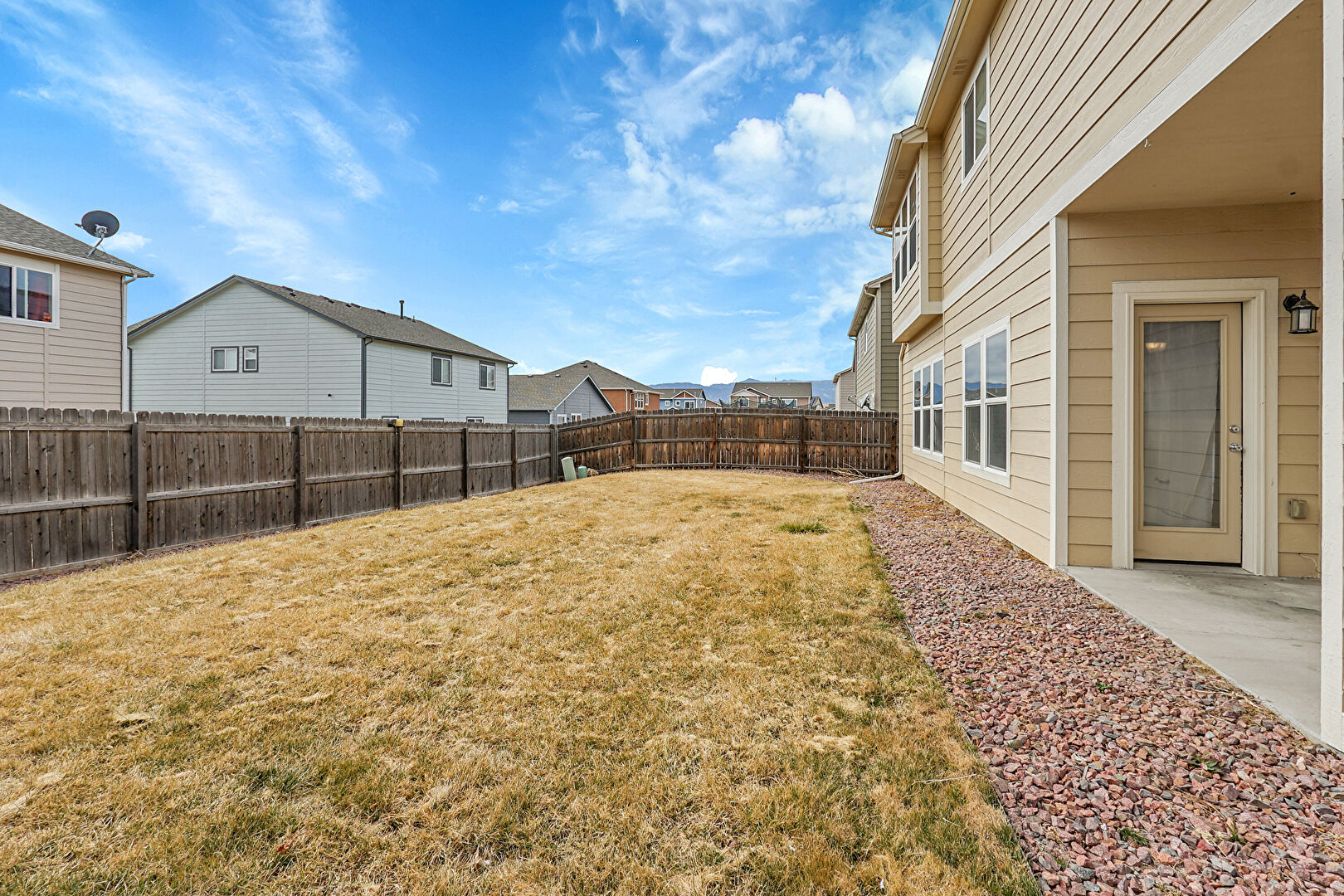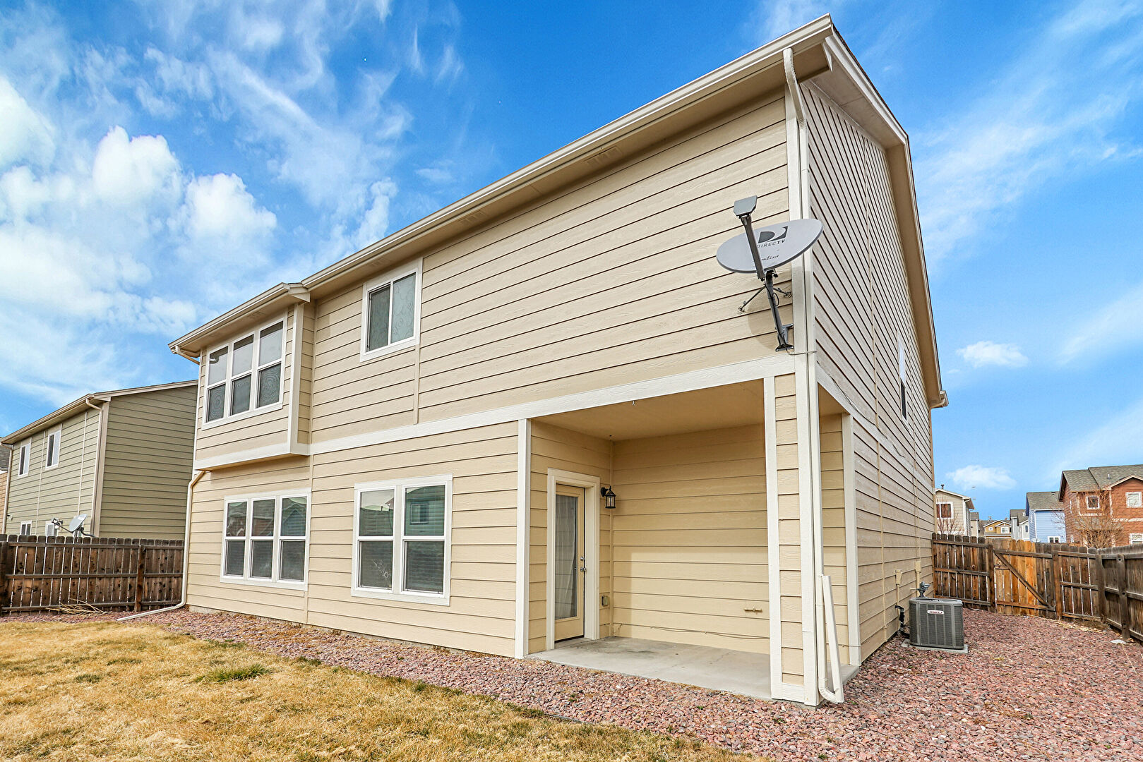 Central Ac, Concrete Foundation, Downspout, Fence, Gate, Gutters, Horizontal Siding, Lawn, Patio, Residential View, Satellite Dish, Fence, Horizontal Siding, Lawn, Satellite Dish