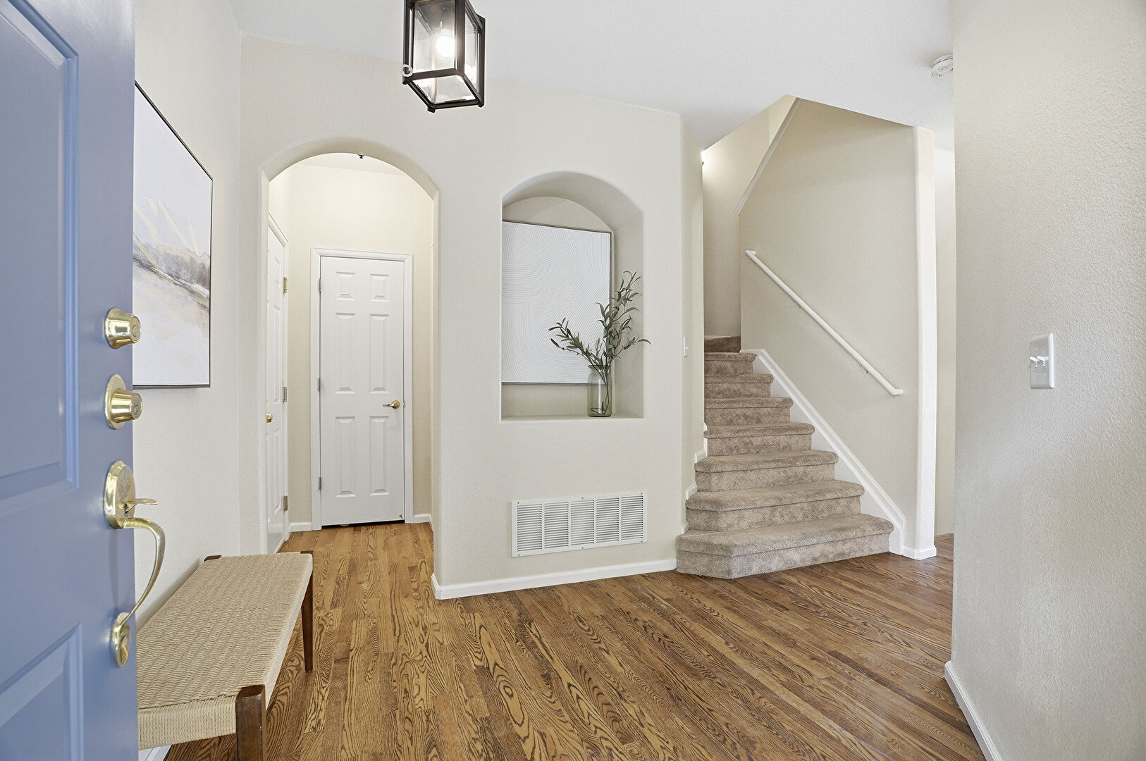 Arched Walkways, Drywall, Stairs, Vent, Wood Finish Floor, Baseboards Wall
