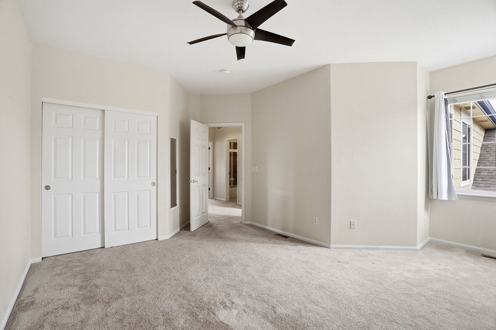 Baseboards Wall, Carpet, Ceiling Fan, Closet, Drywall, Natural Light, Vent, Baseboards Wall, Ceiling Fan