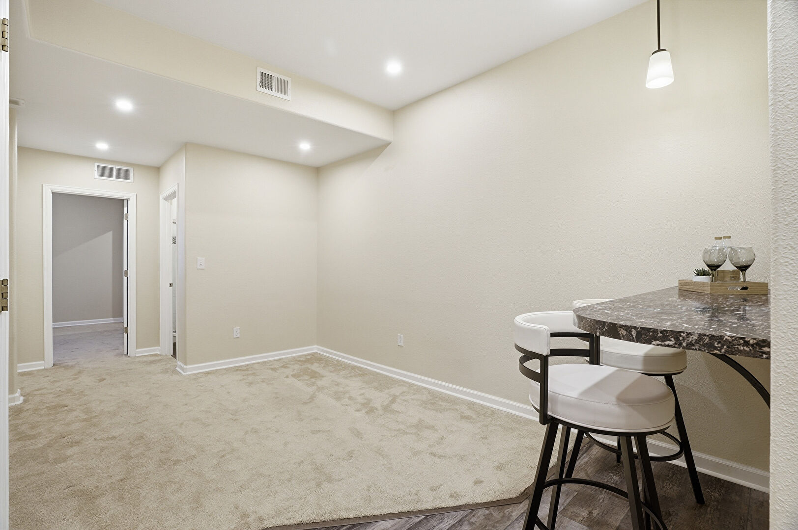 Carpet, Drywall, Recessed Lighting, Vent, Baseboards Wall