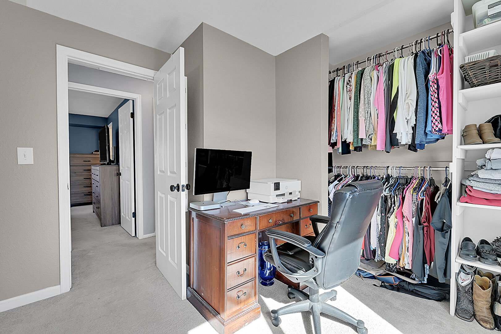 Carpet, Closet, Drywall, Natural Light, Office Area, Vent, Baseboards Wall