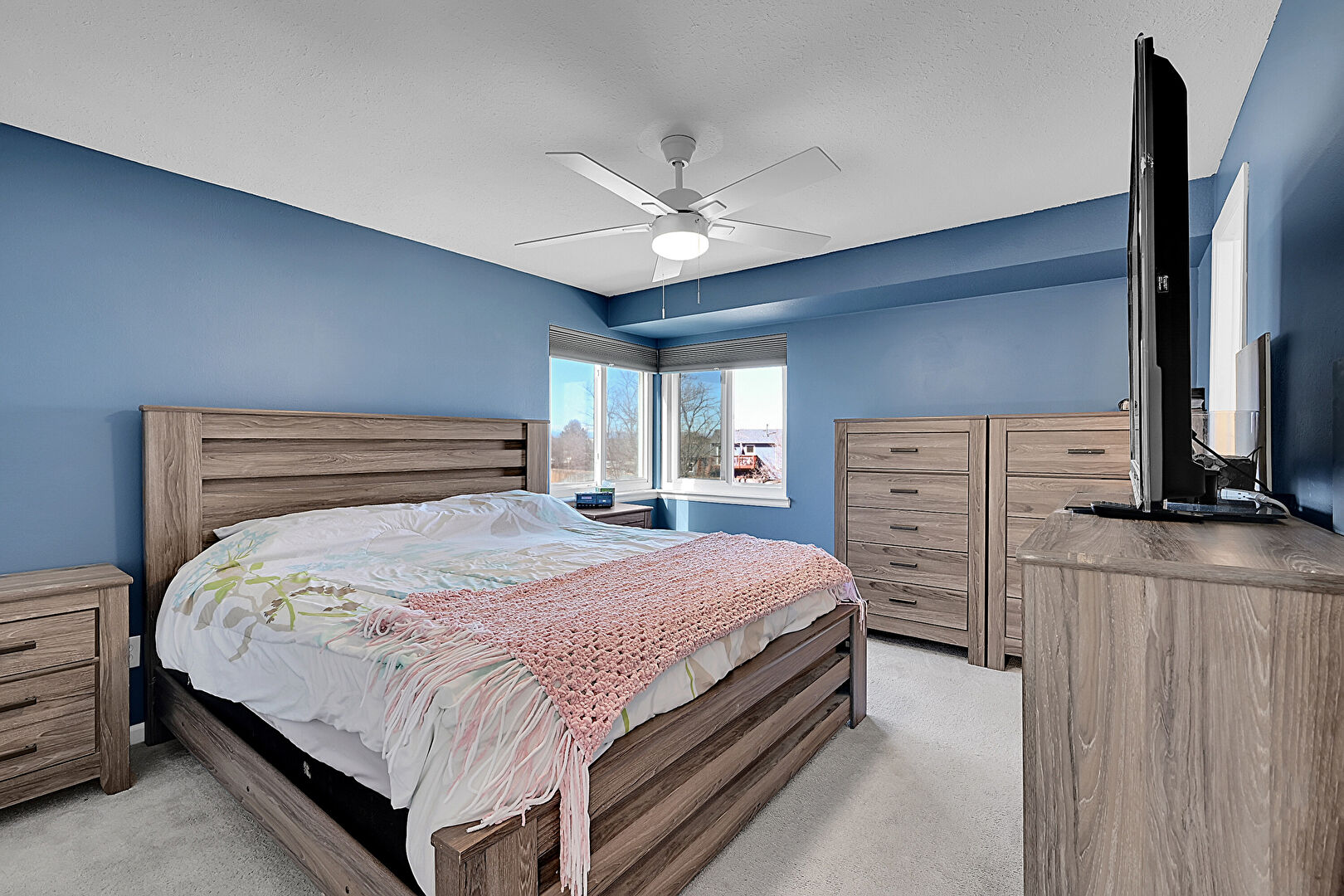 Carpet, Ceiling Fan, Drywall, Ensuite Bathroom, Closet, Natural Light