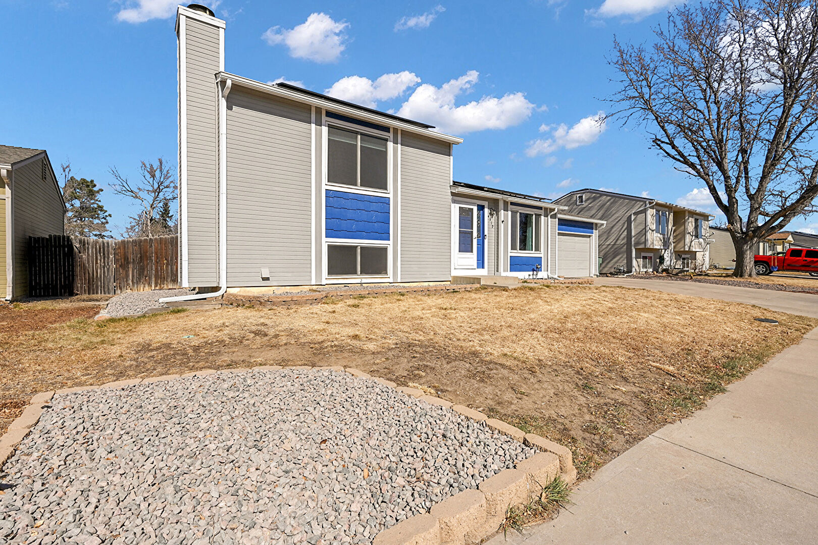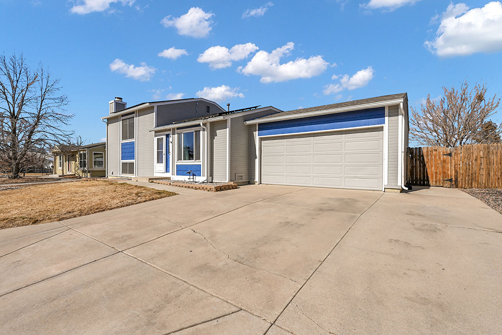 Chimney, Concrete Foundation, Downspout, Driveway, Fence, Gutters, Horizontal Siding, Lawn, Residential View, Shingle Roof, Driveway, Gutters, Solar Panels