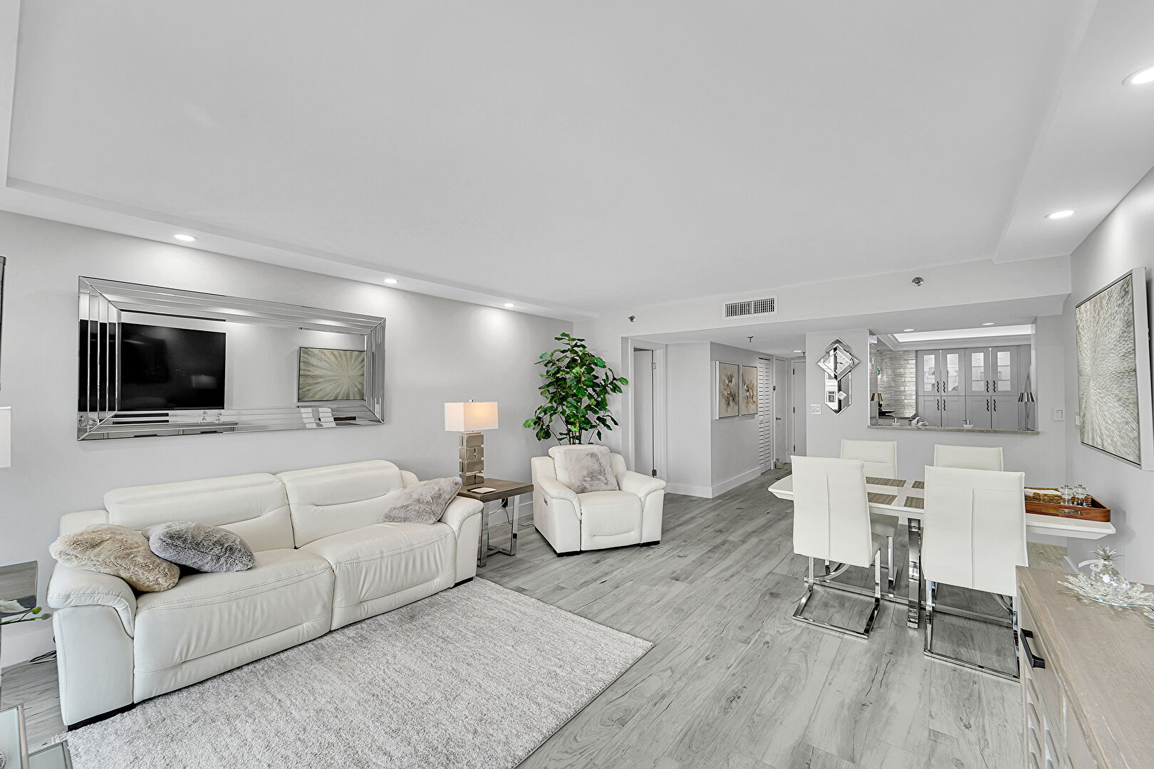 Baseboards Wall, Crown Molding, Drywall, Natural Light, Recessed Lighting, Vent, Wood Finish Floor, Baseboards Wall, Recessed Lighting