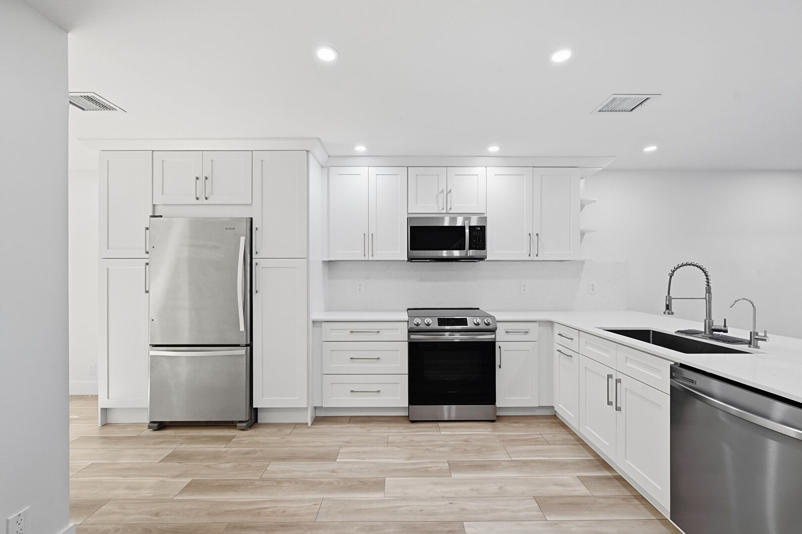 Access To Exterior, Baseboards Wall, Ceiling Fan, Closet, Drywall, French Doors, Natural Light, Recessed Lighting, U Shaped Kitchen, Wood Finish Floor, Baseboards Wall, Drywall, Recessed Lighting