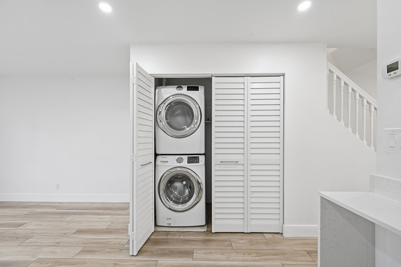 Baseboards Wall, Drywall, Laundry, Recessed Lighting, Wood Finish Floor