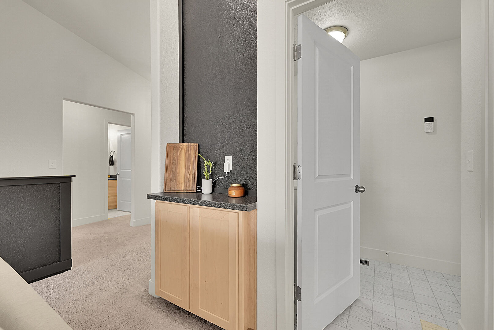 Baseboards Wall, Carpet, Drywall, Natural Light, Recessed Lighting, Textured Ceiling, Textured Wall, Tile Floor, Vaulted Ceiling, Vent, Baseboards Wall, Carpet, Drywall