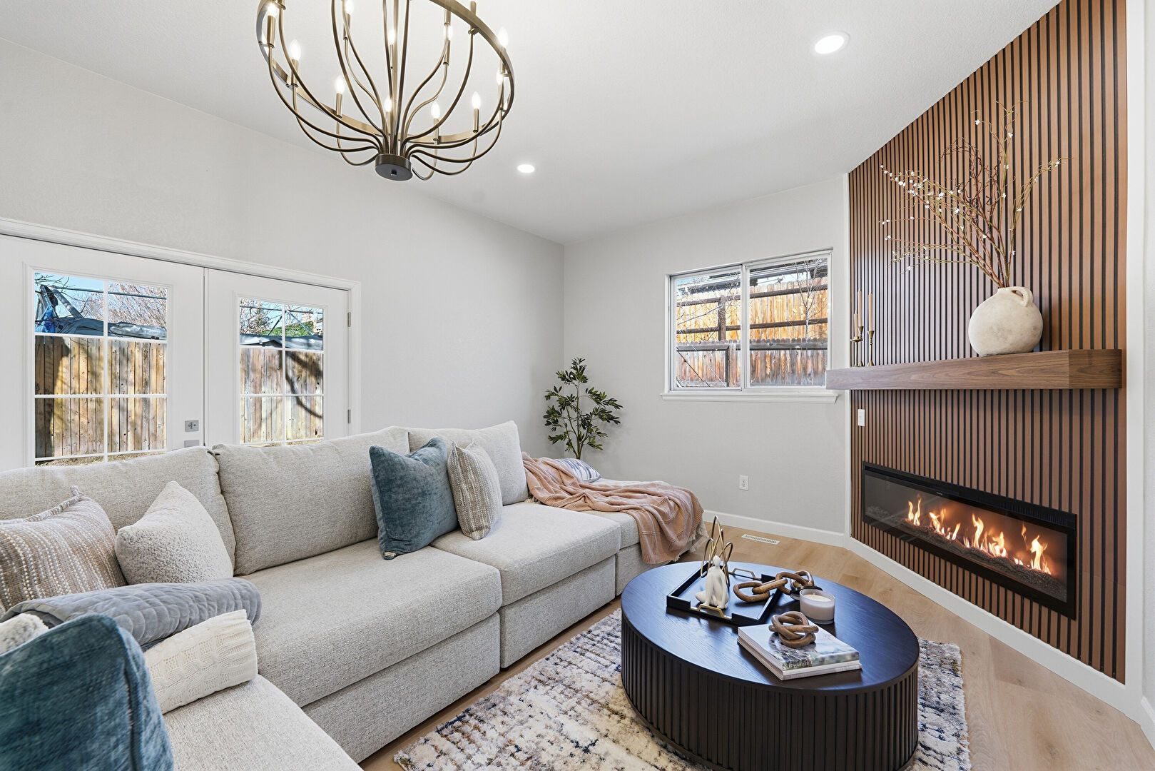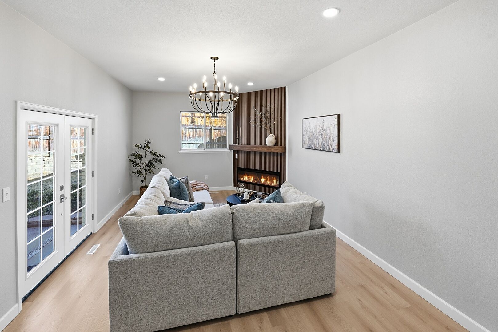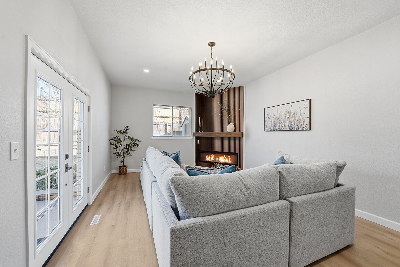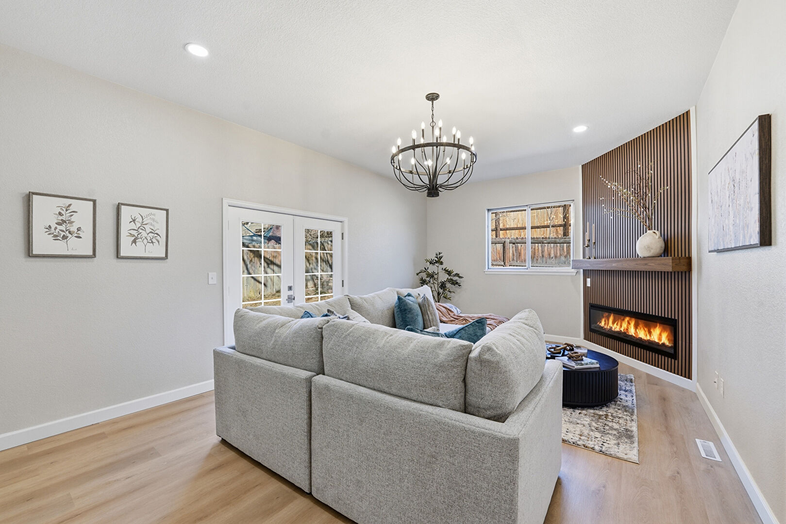 Baseboards Wall, Drywall, Fireplace, French Doors, Natural Light, Notable Chandelier, Recessed Lighting, Vent, Wood Finish Floor, Baseboards Wall, Drywall, Fireplace, French Doors, Recessed Lighting, Vent, Wood Finish Floor