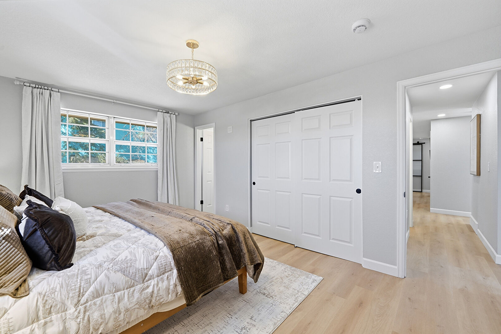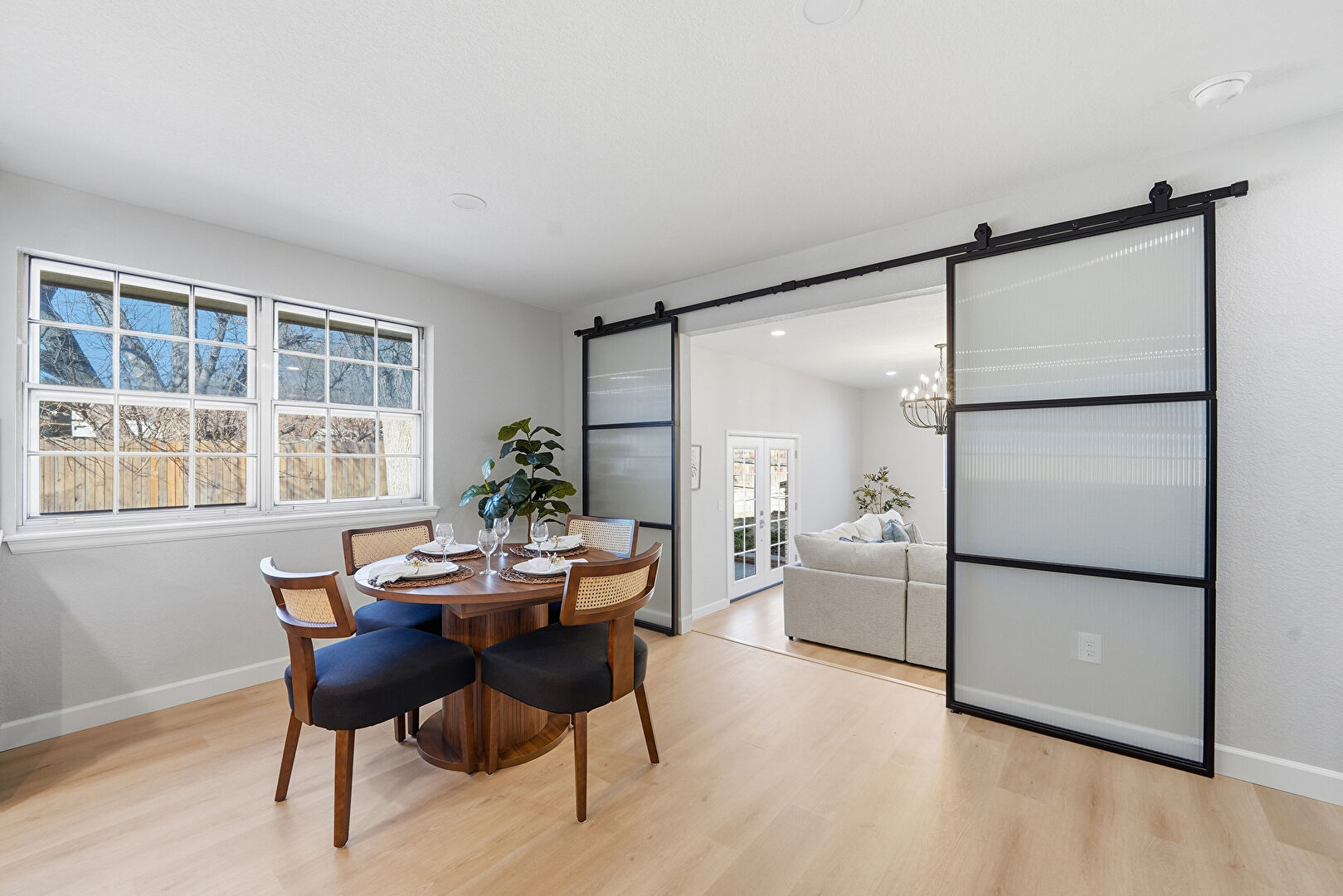 Barn Door, Baseboards Wall, Drywall, French Doors, Notable Chandelier, Recessed Lighting, Smoke Carbon Monoxide Detector, Wood Finish Floor, Natural Light