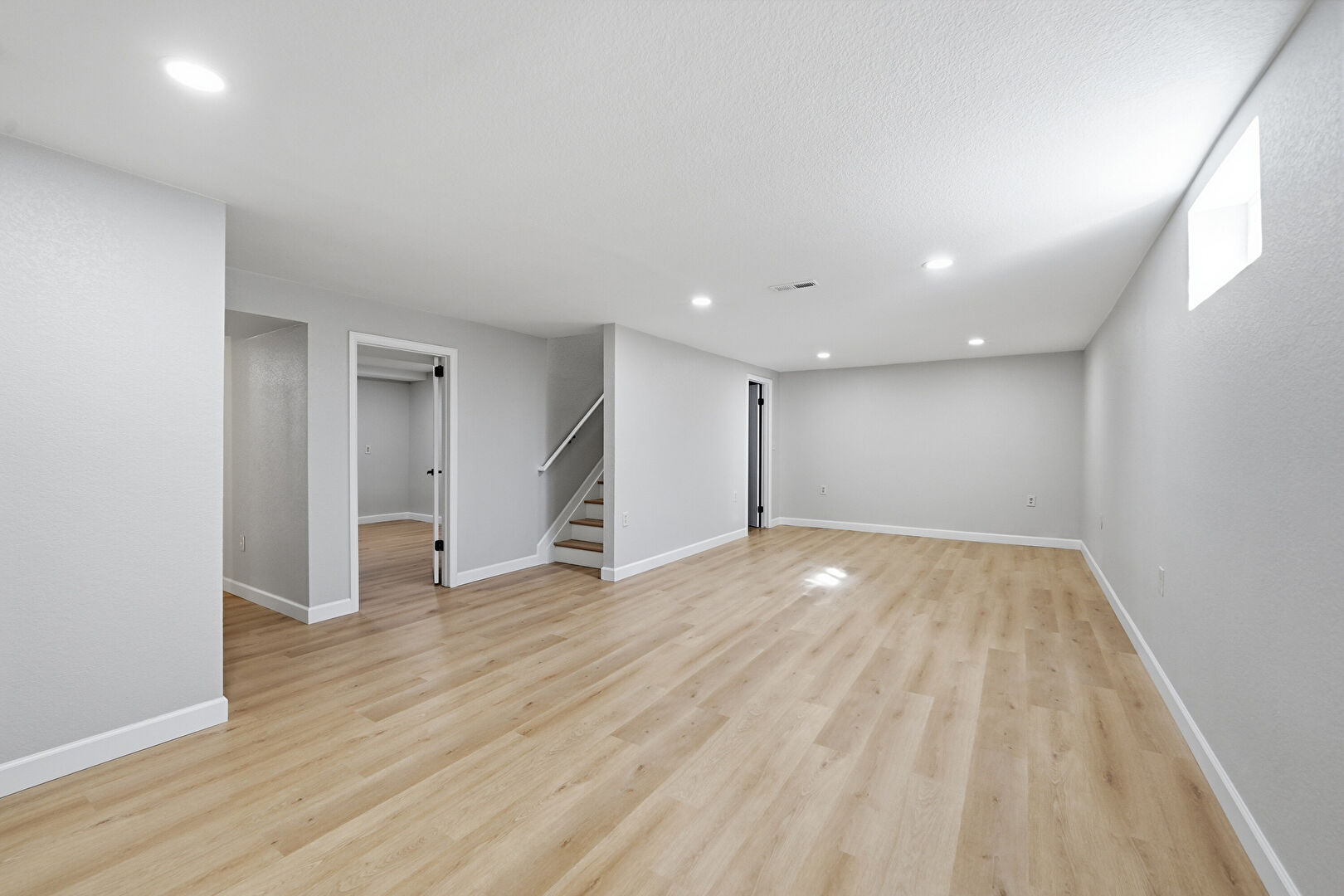 Baseboards Wall, Basement, Closet, Drywall, Natural Light, Recessed Lighting, Smoke Carbon Monoxide Detector, Textured Wall, Vent, Wood Finish Floor, Baseboards Wall, Basement, Drywall, Natural Light, Textured Wall