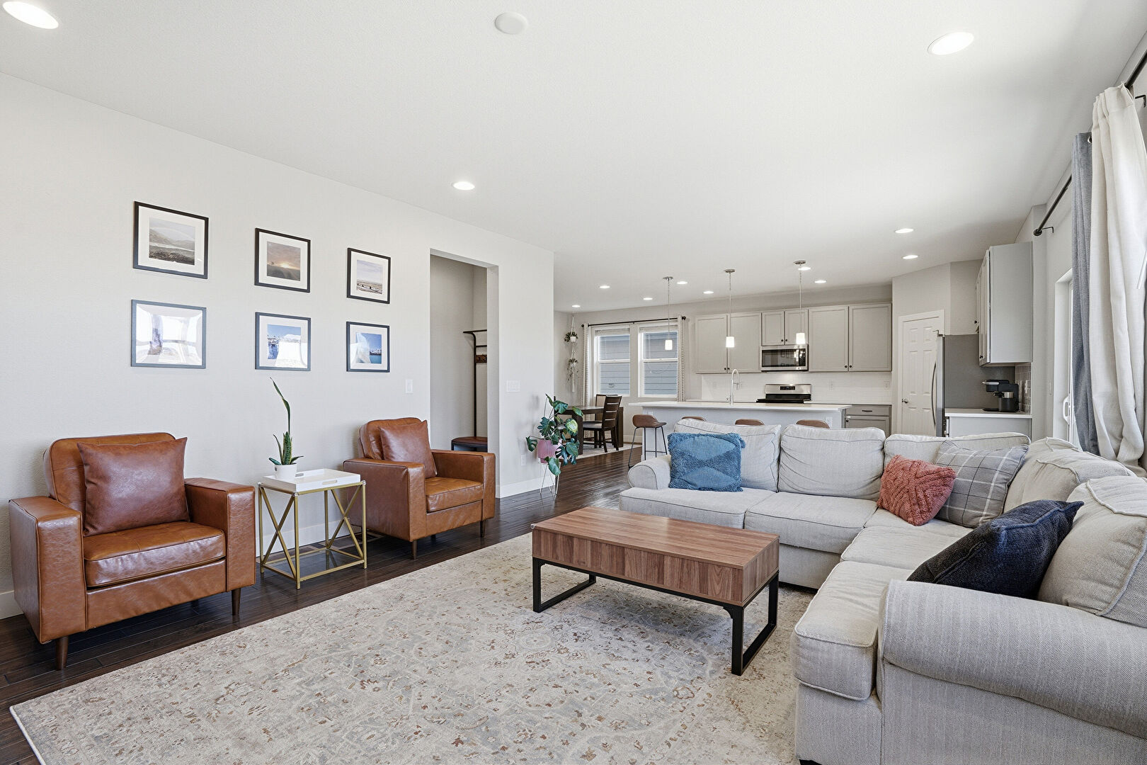 Baseboards Wall, Drywall, L Shaped Kitchen, Natural Light, Recessed Lighting, Smoke Carbon Monoxide Detector, Stairs, Wood Finish Floor, Drywall, Natural Light, Vent