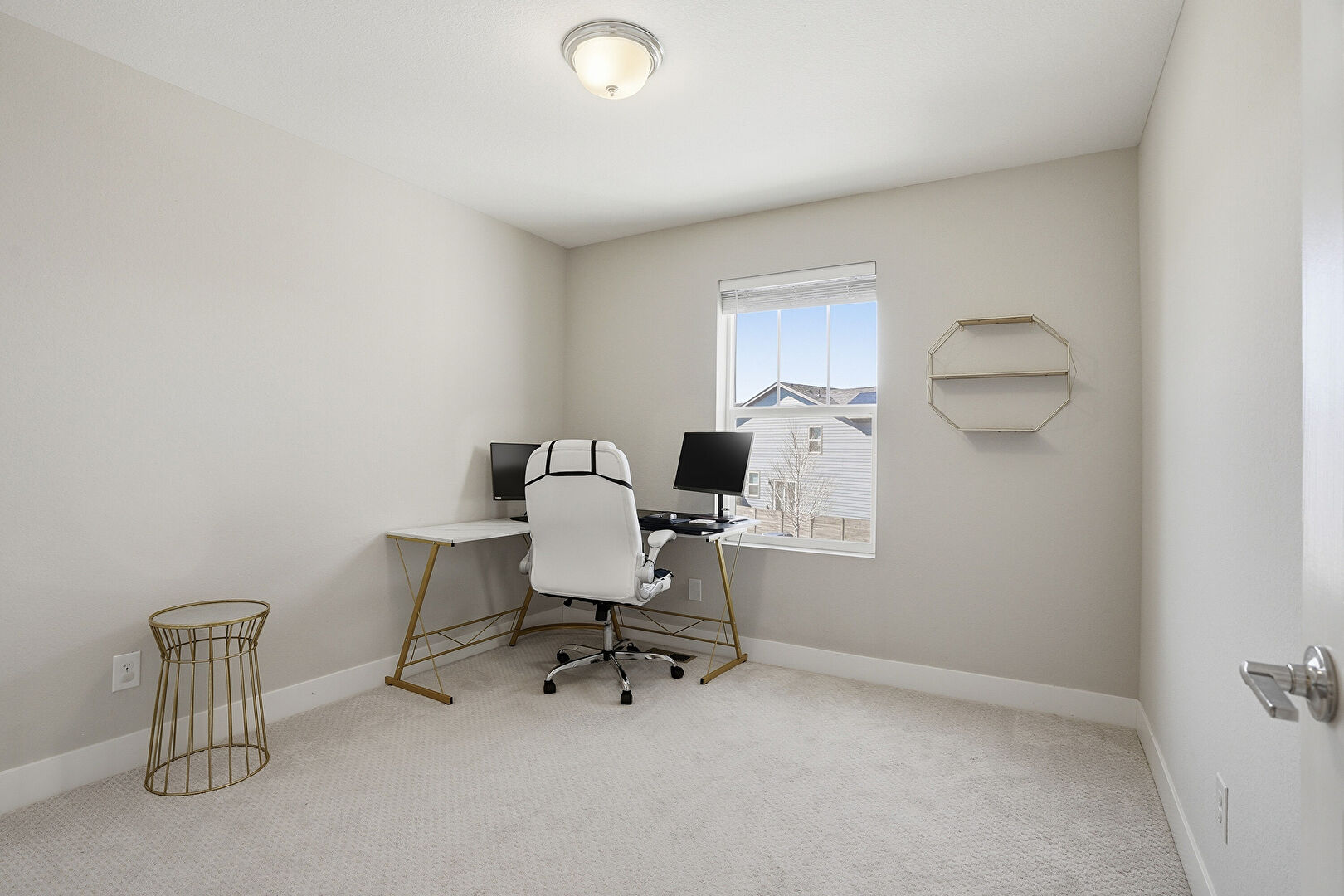 Baseboards Wall, Carpet, Drywall, Natural Light, Office Area, Recessed Lighting, Vent, Baseboards Wall, Carpet, Smoke Carbon Monoxide Detector, Vent