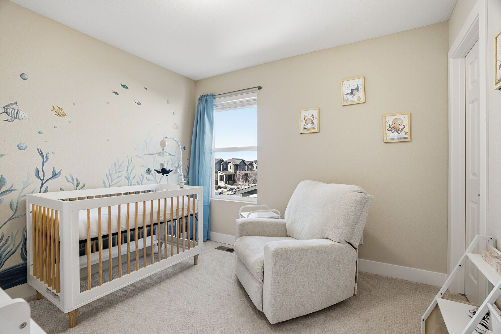 Baseboards Wall, Carpet, Drywall, Natural Light, Nursery, Smoke Carbon Monoxide Detector, Vent, Carpet, Vent
