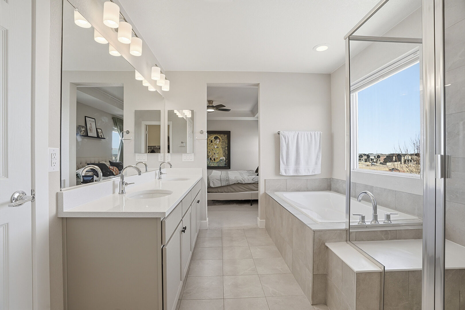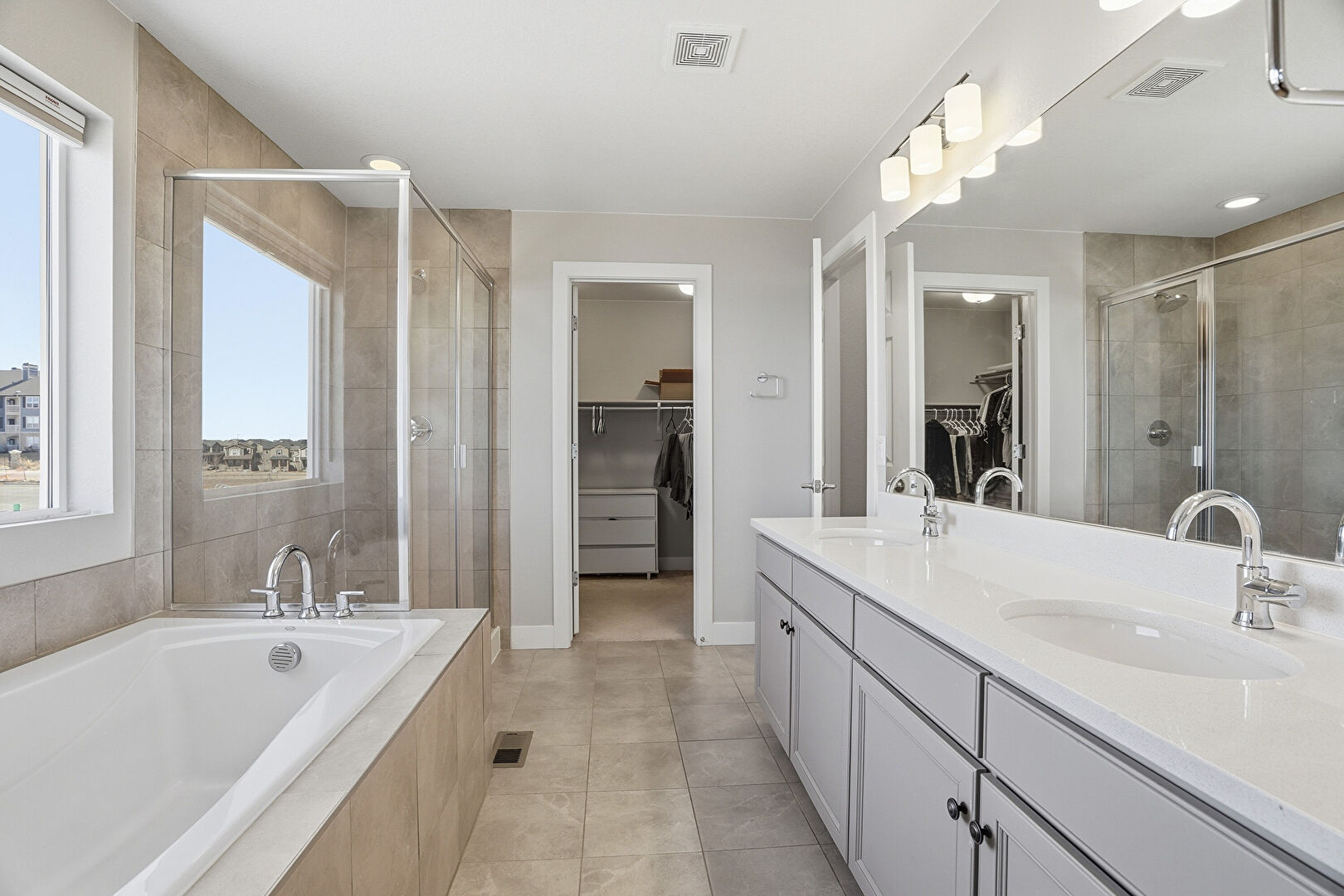 Baseboards Wall, Ceiling Fan, Double Vanity, Drywall, Ensuite Bathroom, Full Bathroom, Natural Light, Recessed Lighting, Tile Floor, Vent, Walk In Closet, Full Bathroom, Recessed Lighting