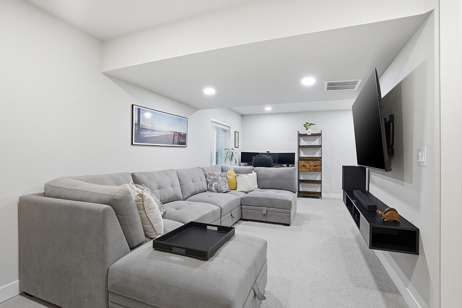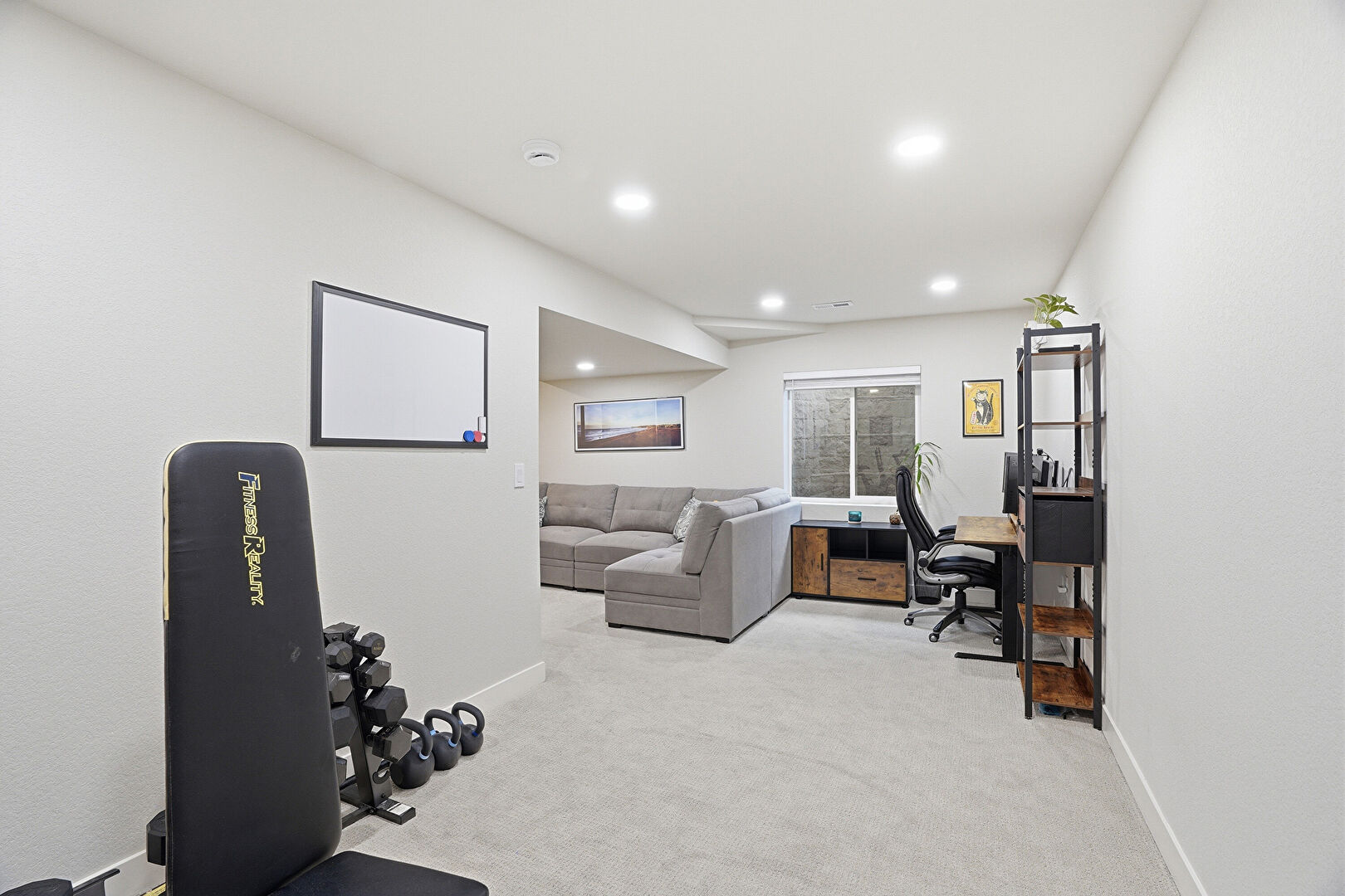 Baseboards Wall, Basement, Carpet, Drywall, Natural Light, Office Area, Recessed Lighting, Smoke Carbon Monoxide Detector, Vent, Carpet, Natural Light