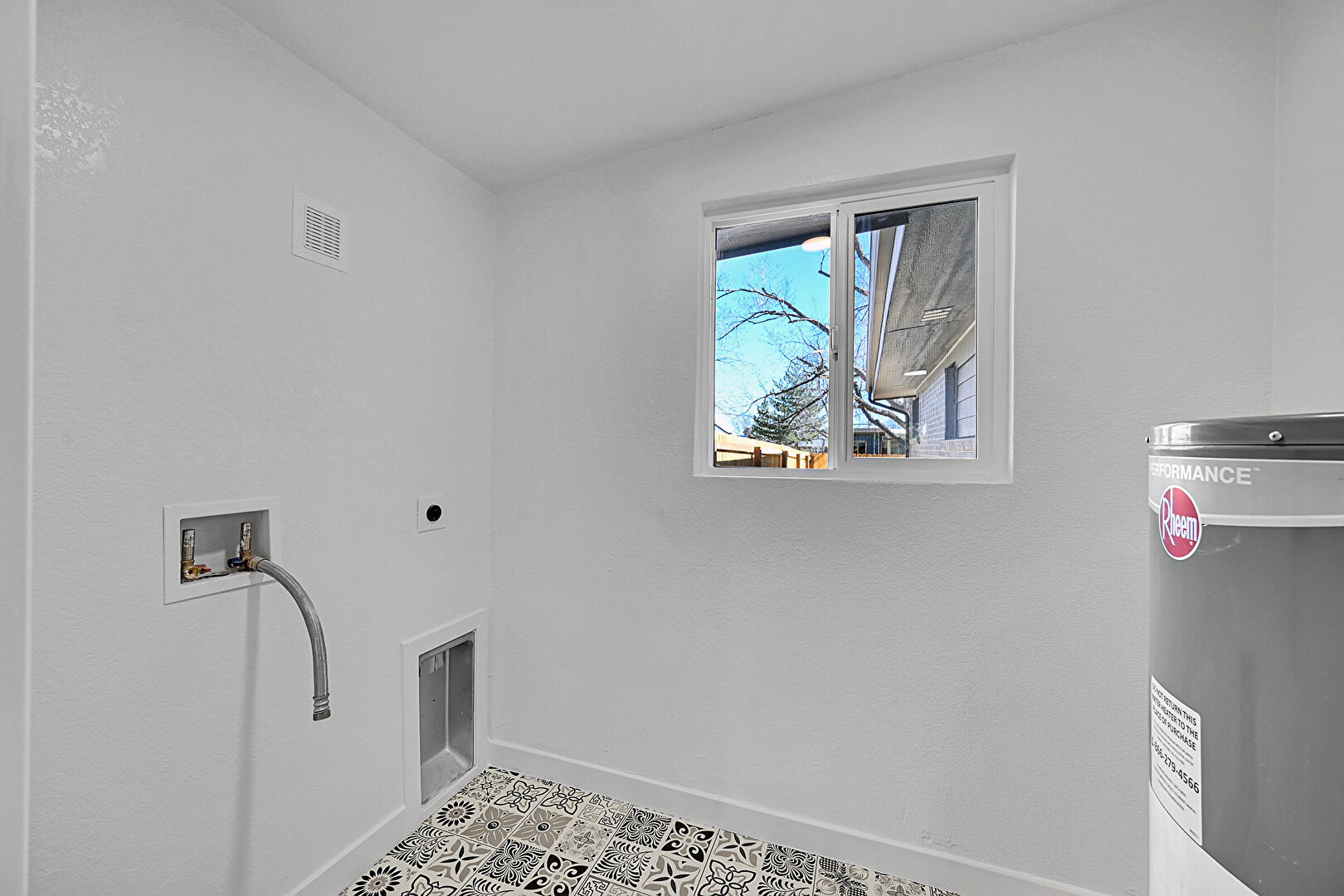 Baseboards Wall, Drywall, Electric Dryer Hookup, Laundry, Natural Light, Tile Floor, Washer Hookup, Water Heater, Vent