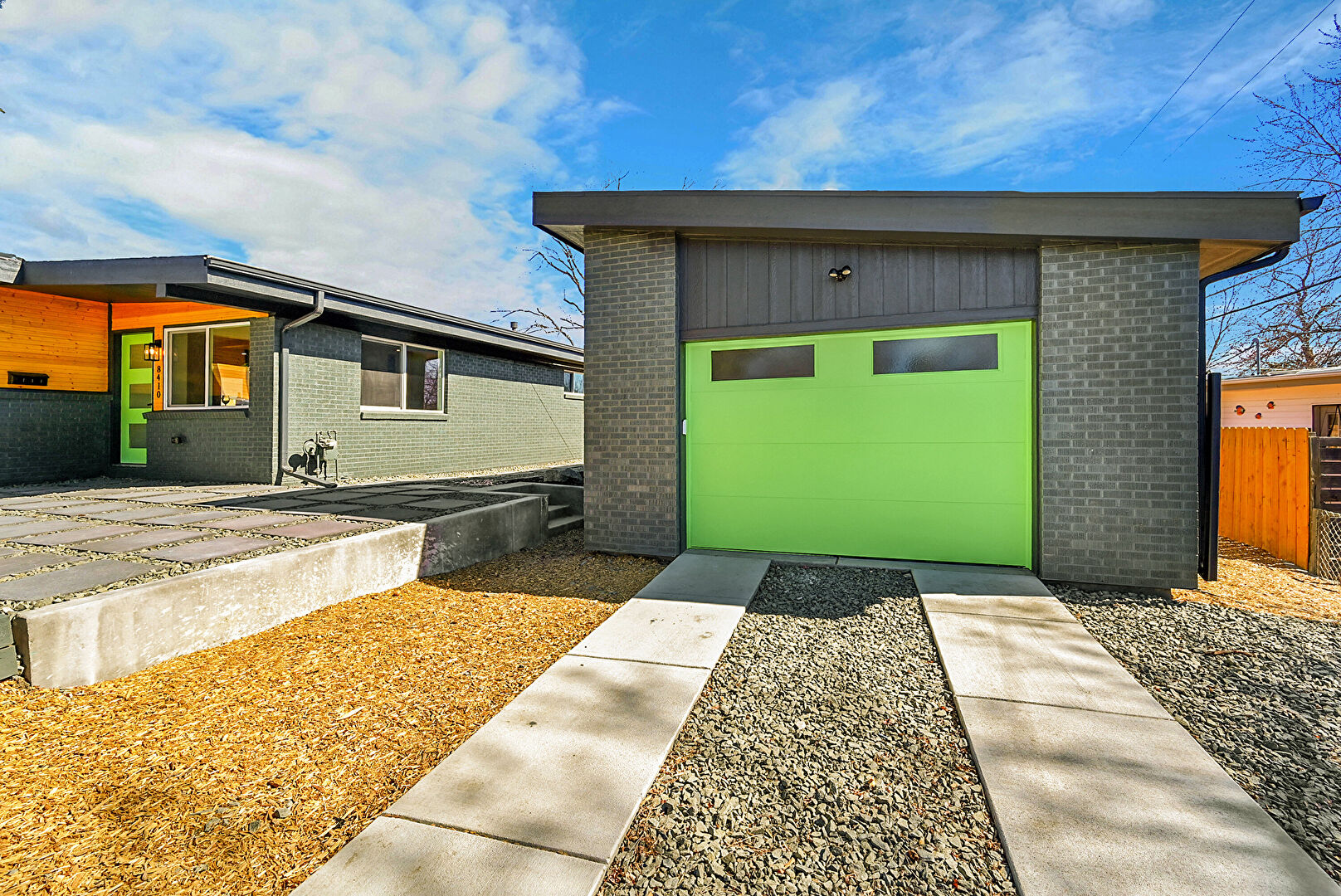 Brick Siding, Downspout, Driveway, Fence, Garage, Gas Meter, Gutters, Outdoor Structure, Patio, Porch, Vertical Siding, Brick Siding, Downspout, Fence, Gutters, Outdoor Structure