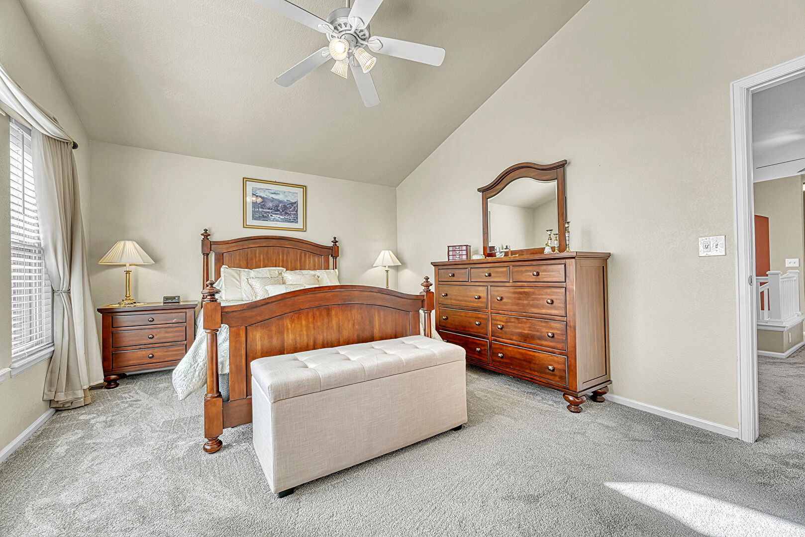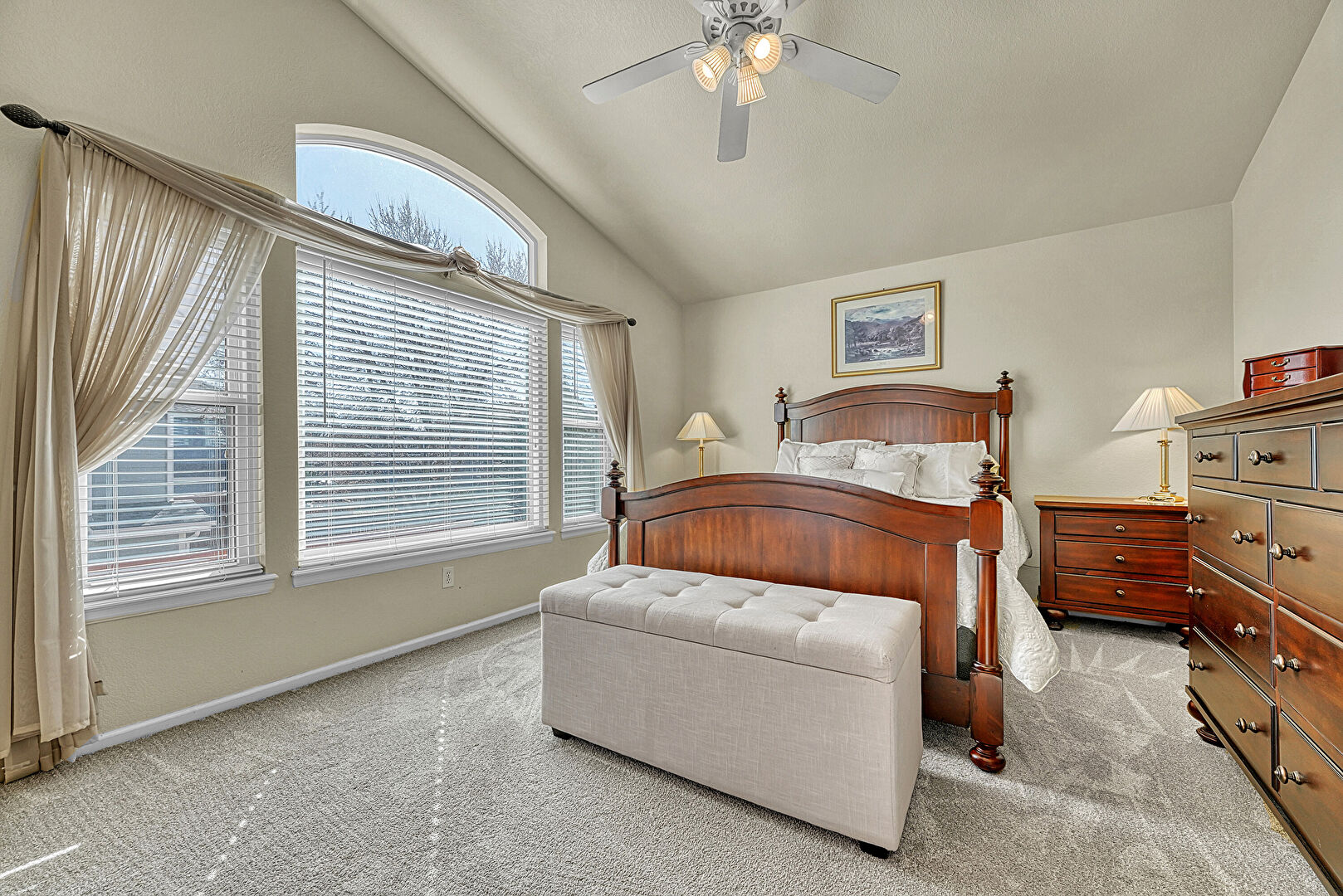 Arched Walkways, Baseboards Wall, Carpet, Ceiling Fan, Drywall, Ensuite Bathroom, High Ceiling, Natural Light, Vaulted Ceiling, Natural Light, Tile Floor