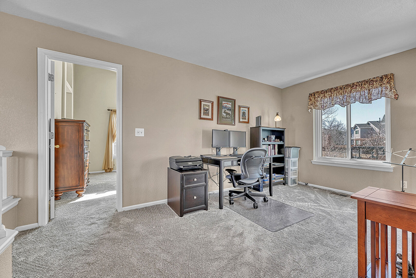 Baseboards Wall, Carpet, Drywall, Natural Light, Office Area, Vent, Ceiling Fan, Office Area