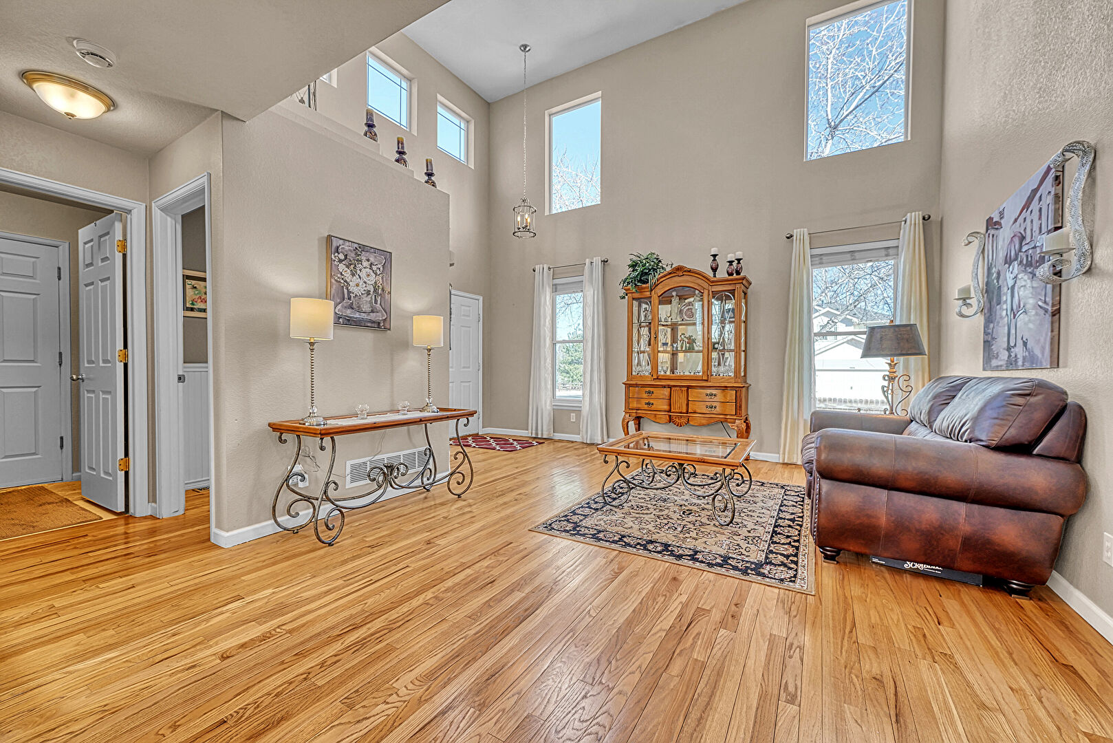 Natural Light, Notable Chandelier, Textured Ceiling, Textured Wall, Vent, Wood Finish Floor, Baseboards Wall