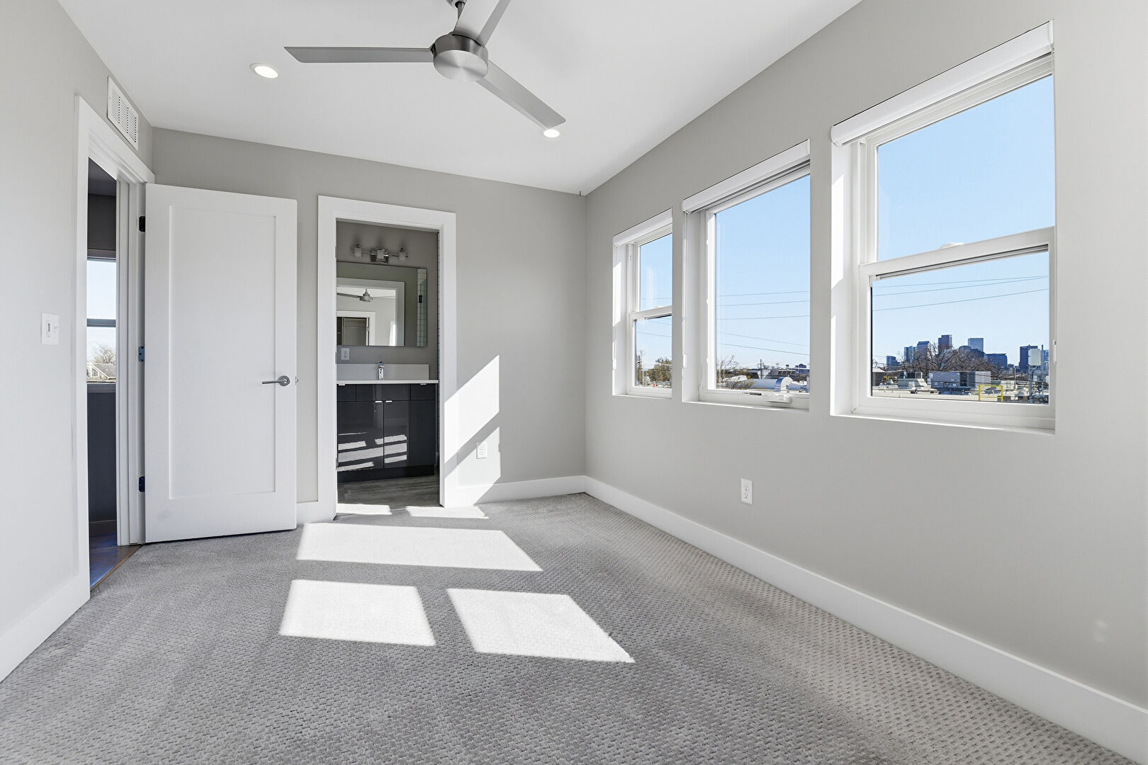 Baseboards Wall, Carpet, Ceiling Fan, Drywall, Ensuite Bathroom, Natural Light, Recessed Lighting, Vent, Natural Light, Recessed Lighting, Walk In Closet