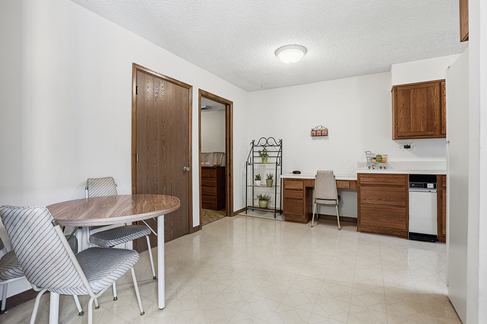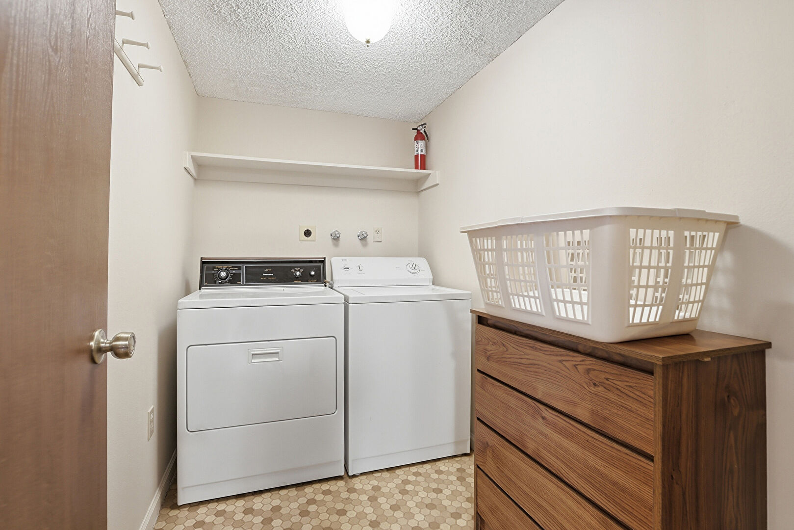 Baseboards Wall, Drywall, Fire Extinguisher, Laundry, Natural Light, Vinyl Floor, Washer Hookup, Textured Ceiling