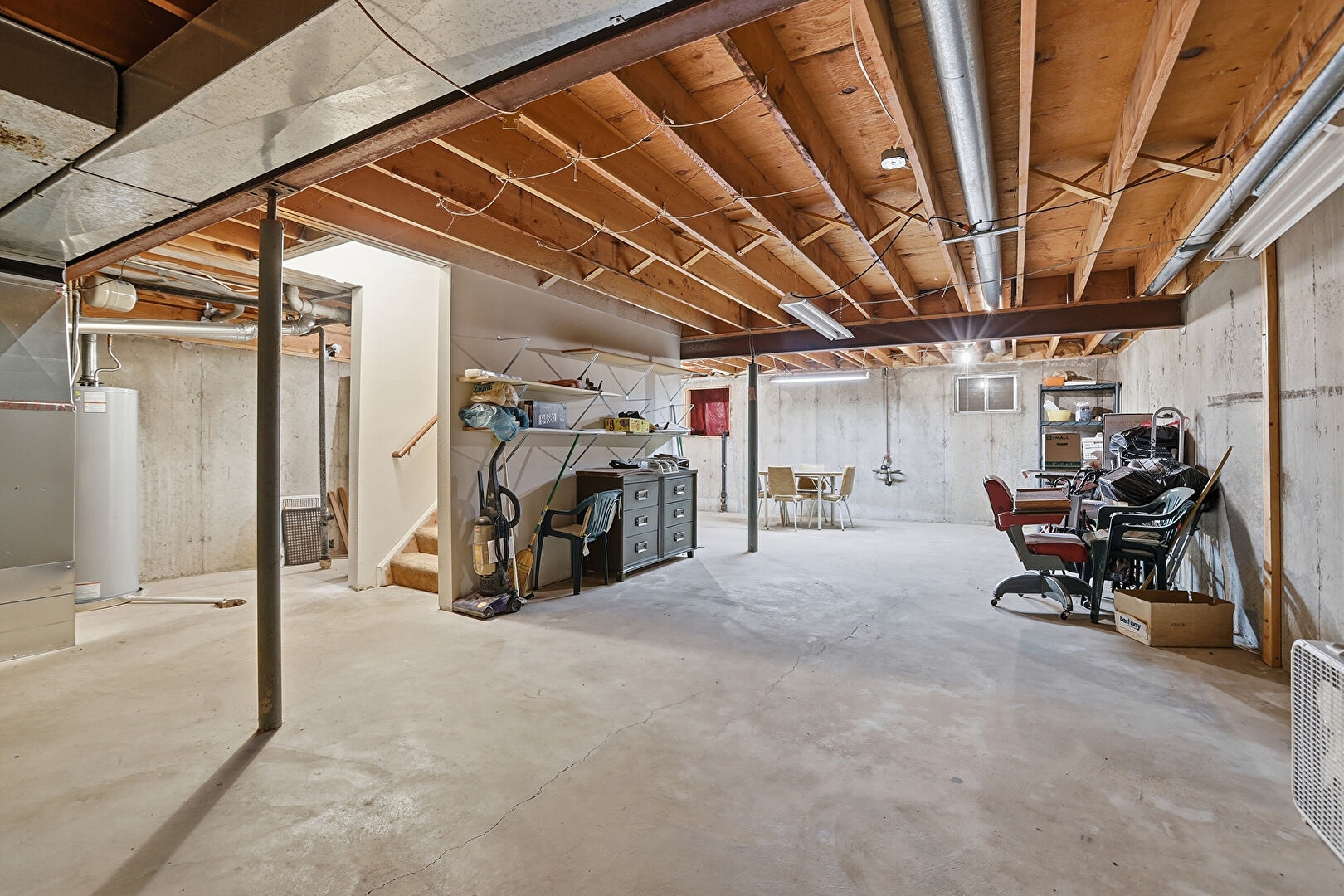Basement, Concrete Foundation, Dehumidifier, Electric Panel, Smoke Carbon Monoxide Detector, Stairs, Water Heater, Basement, Furnace