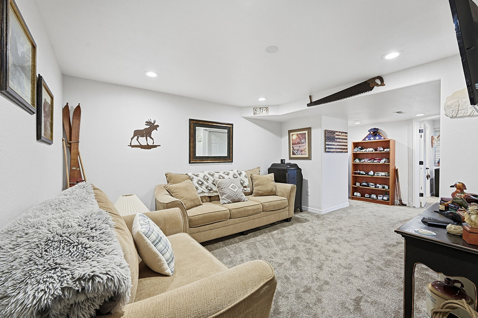 Baseboards Wall, Carpet, Ceiling Fan, Crown Molding, Drywall, Natural Light, Recessed Lighting, Scuttle, Smoke Carbon Monoxide Detector, Textured Ceiling, Textured Wall, Vent, Wood Wall, Basement, Carpet, Ceiling Fan, Closet, Ensuite Bathroom, Vent