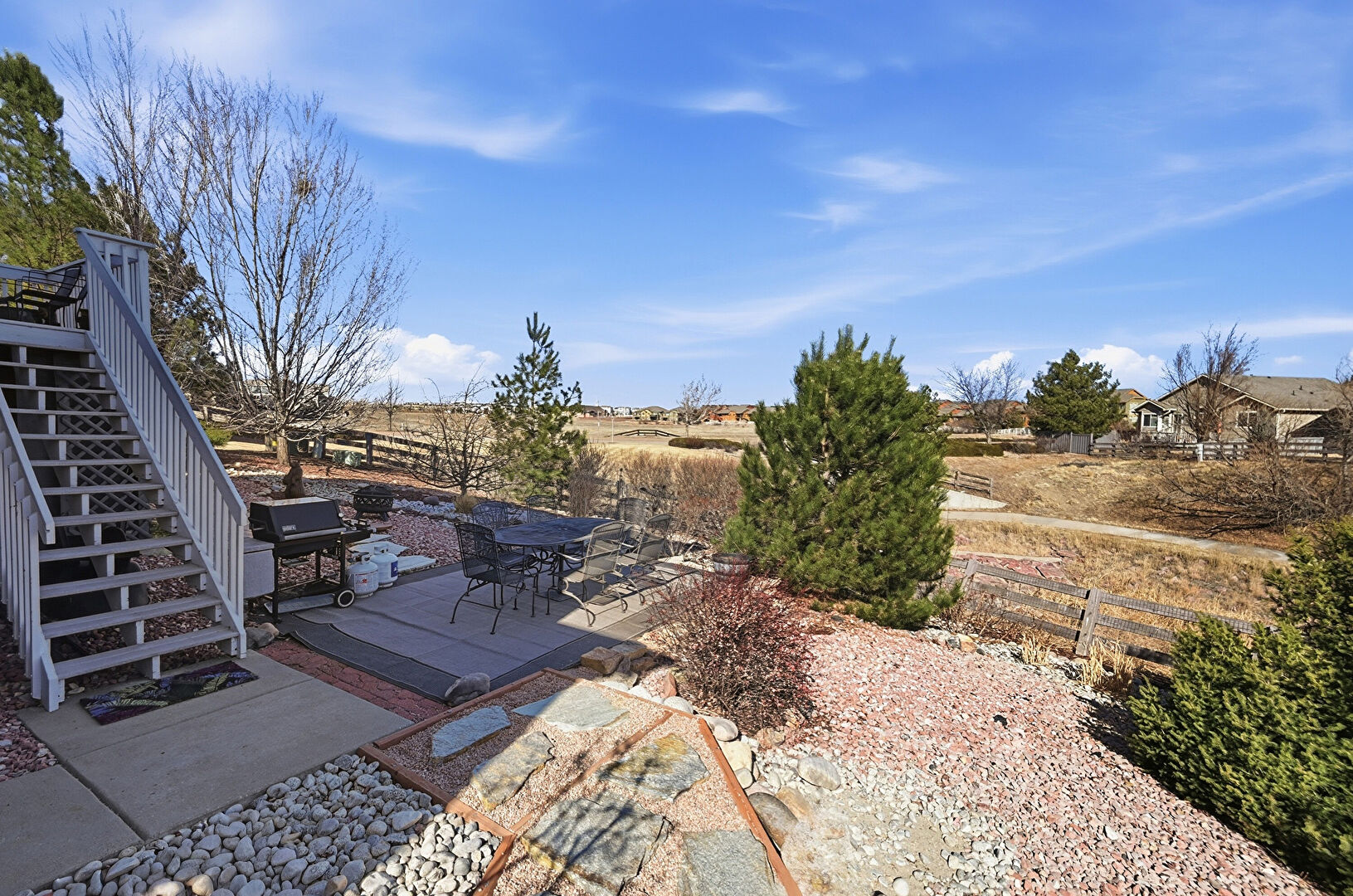Deck, Fence, Grill, Outdoor Dining Area, Stairs, Patio