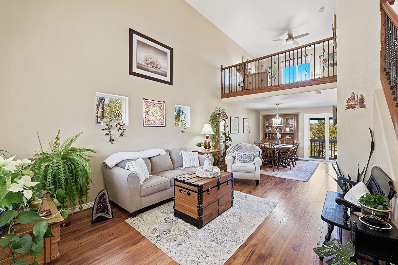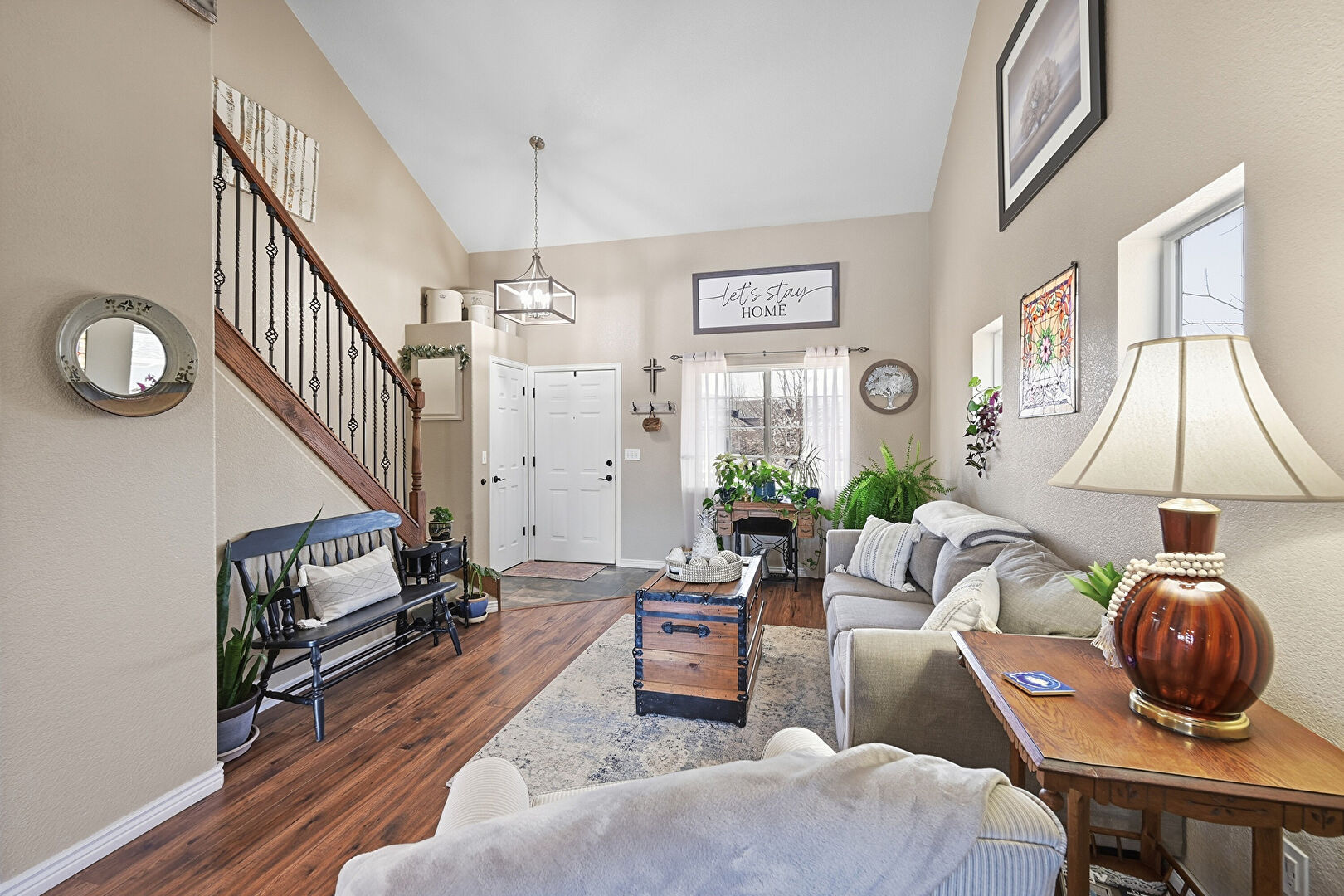 Baseboards Wall, Basement, Carpet, Ceiling Fan, Dehumidifier, Drywall, Fireplace, High Ceiling, Natural Light, Notable Chandelier, Recessed Lighting, Stairs, Textured Wall, Vaulted Ceiling, Wood Finish Floor, Drywall, Notable Chandelier, Stairs, Textured Ceiling