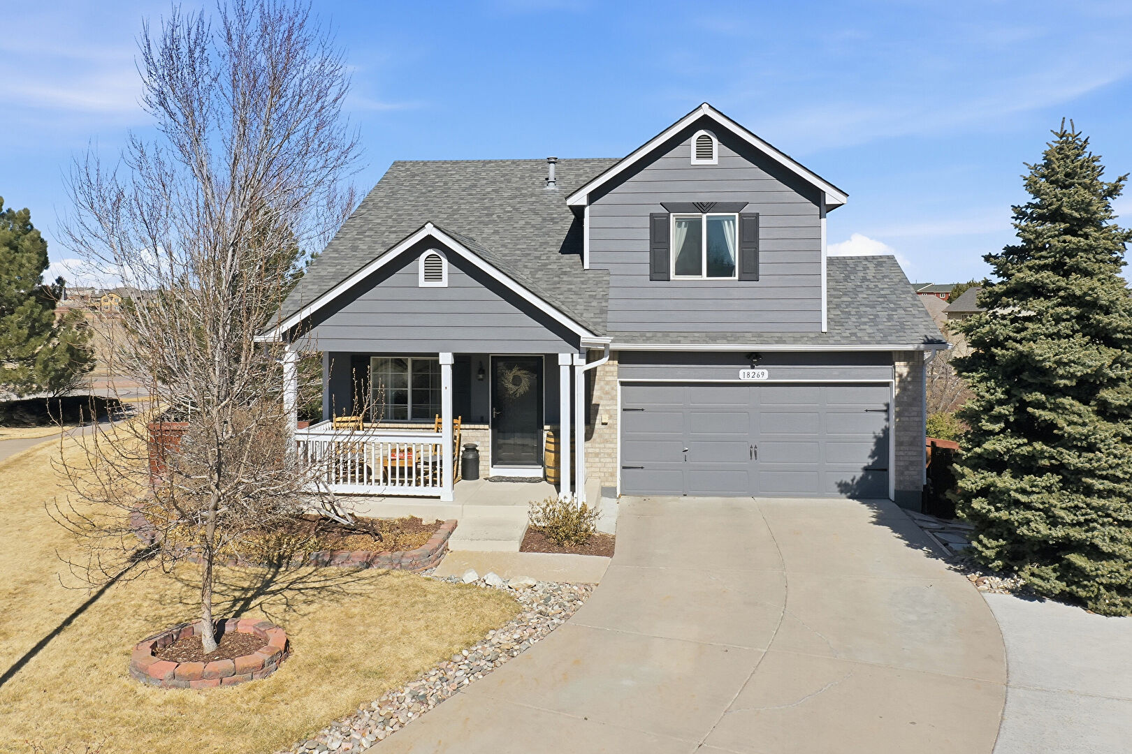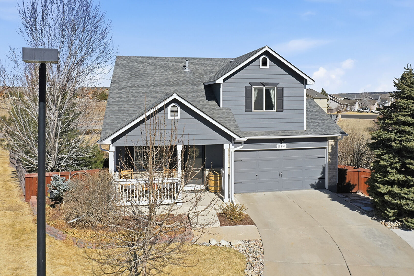 Brick Siding, Built In Garage, Downspout, Driveway, Fence, Gutters, Horizontal Siding, Porch, Shingle Roof, Built In Garage, Downspout, Driveway, Porch, Shingle Roof