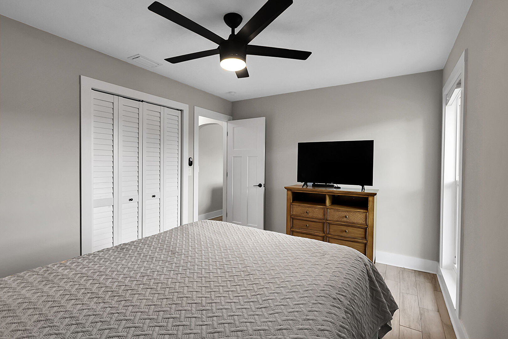 Baseboards Wall, Ceiling Fan, Drywall, Natural Light, Smoke Carbon Monoxide Detector, Vent, Wood Finish Floor, Ceiling Fan, Closet, Wood Finish Floor