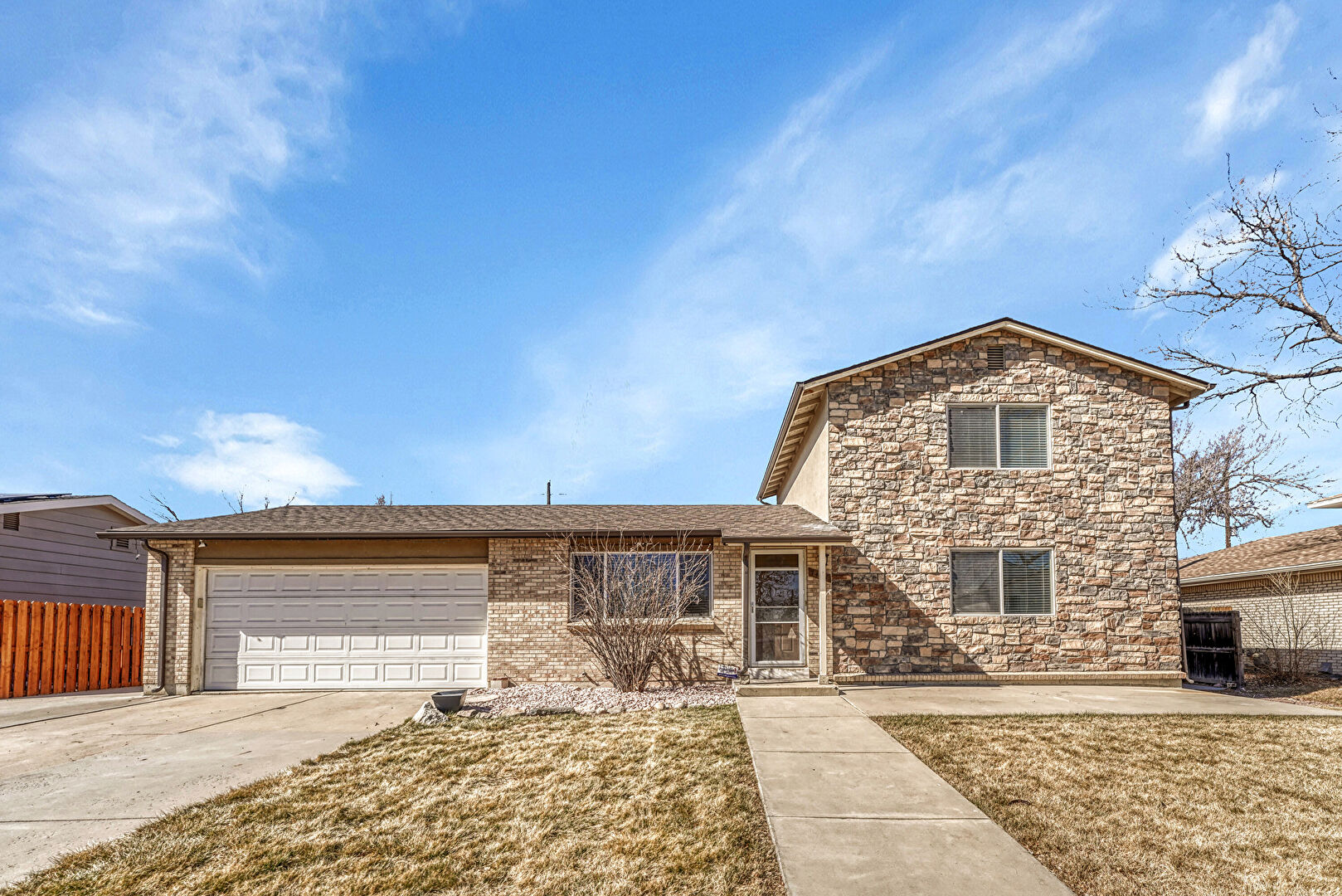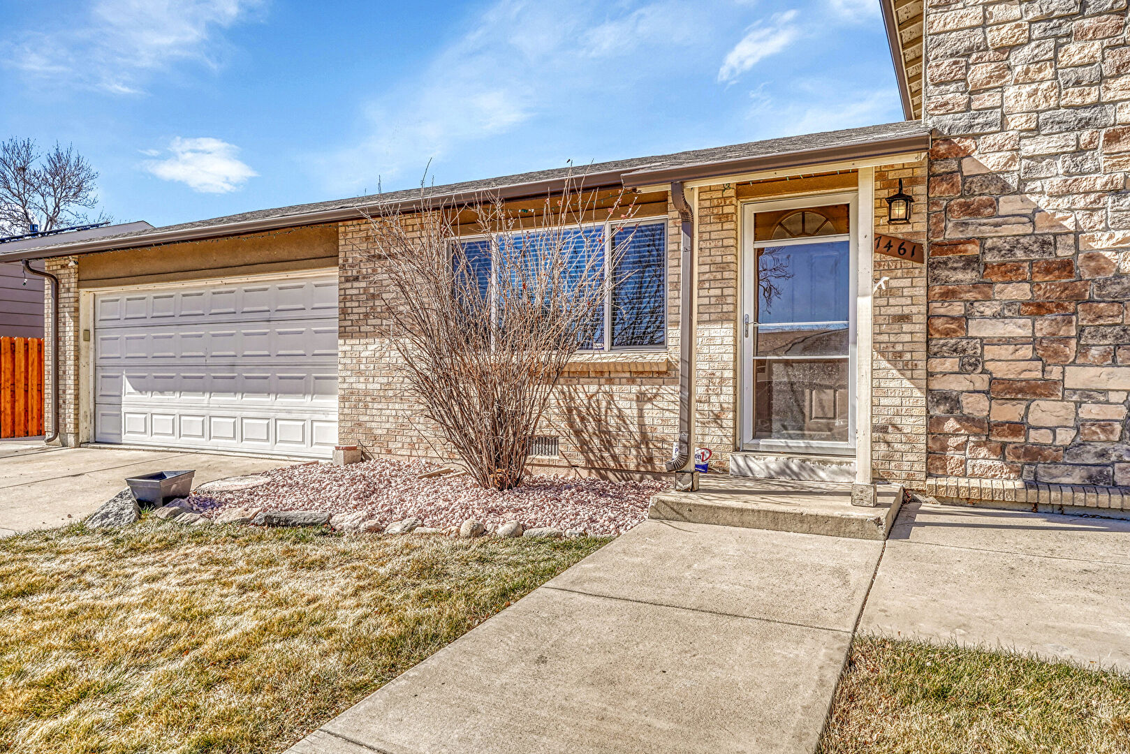 Brick Siding, Driveway, Fence, Gutters, Lawn, Stone Siding, Stoop, Downspout