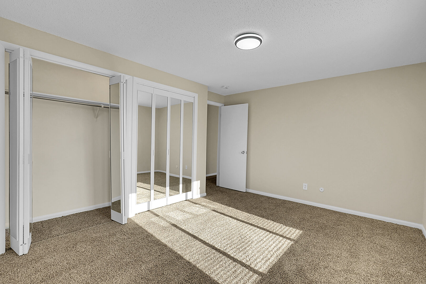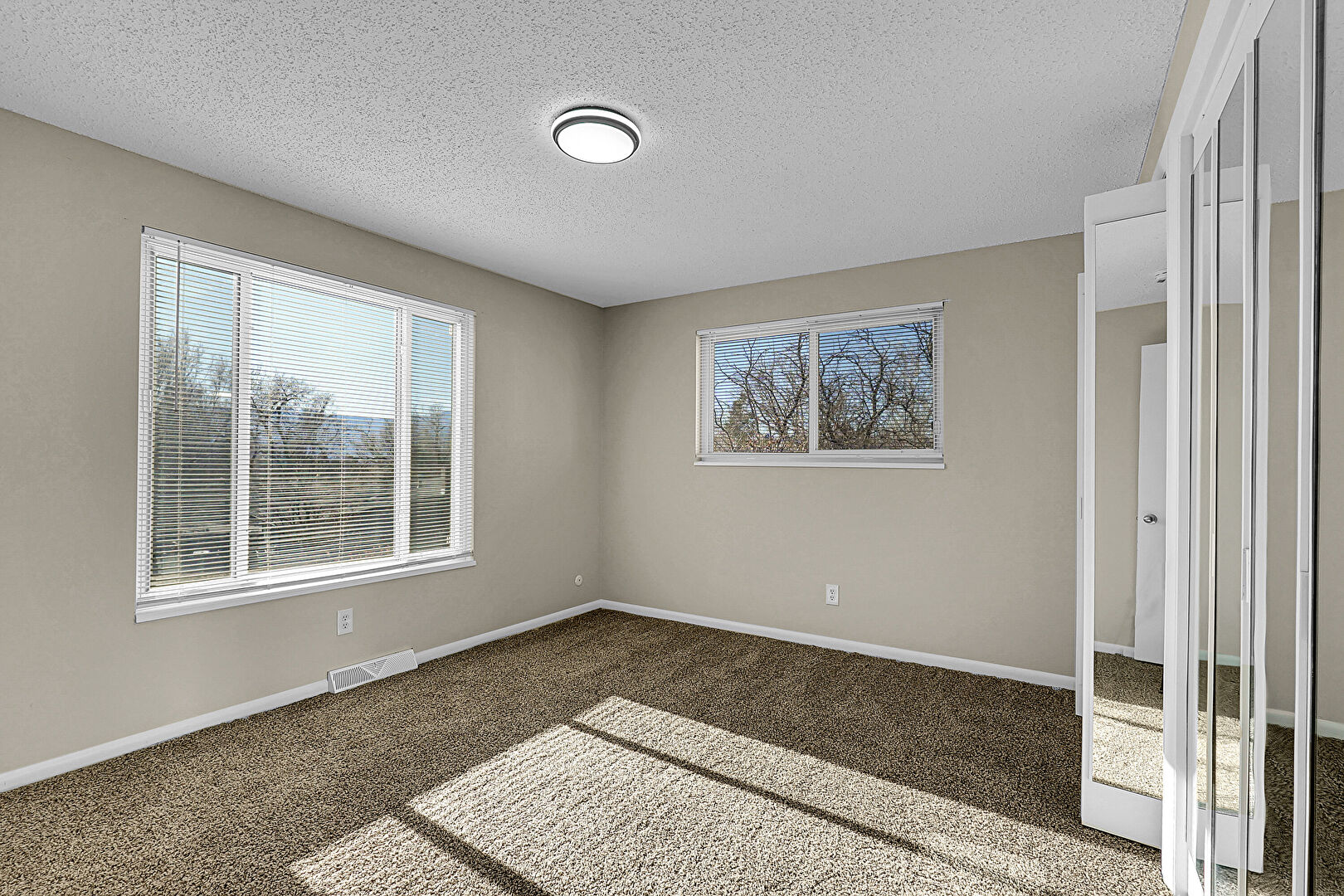 Carpet, Closet, Drywall, Natural Light, Textured Ceiling, Two Closets, Vent, Baseboards Wall