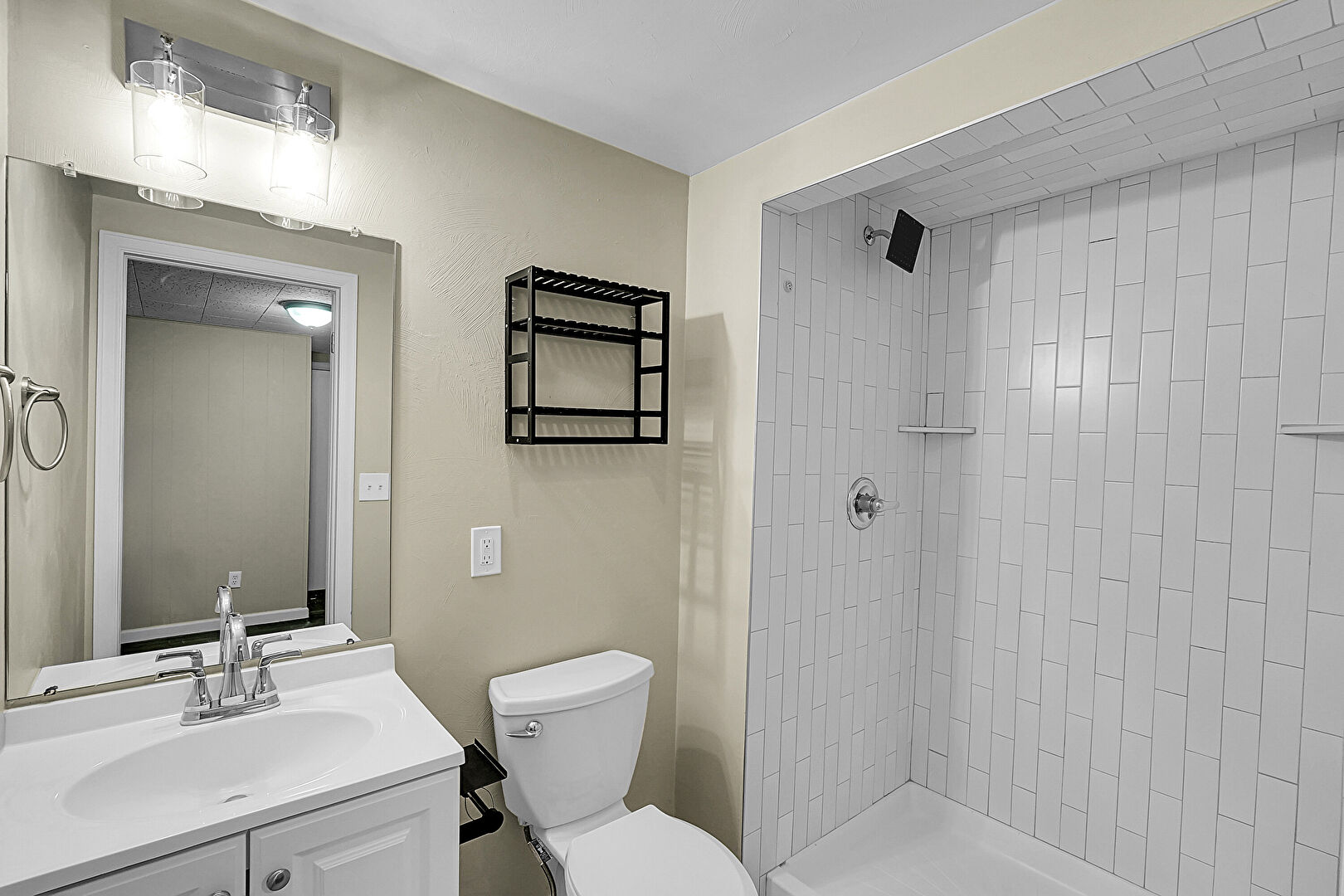 Drywall, Full Bathroom, Vanity, Vent, Combined Bath Shower