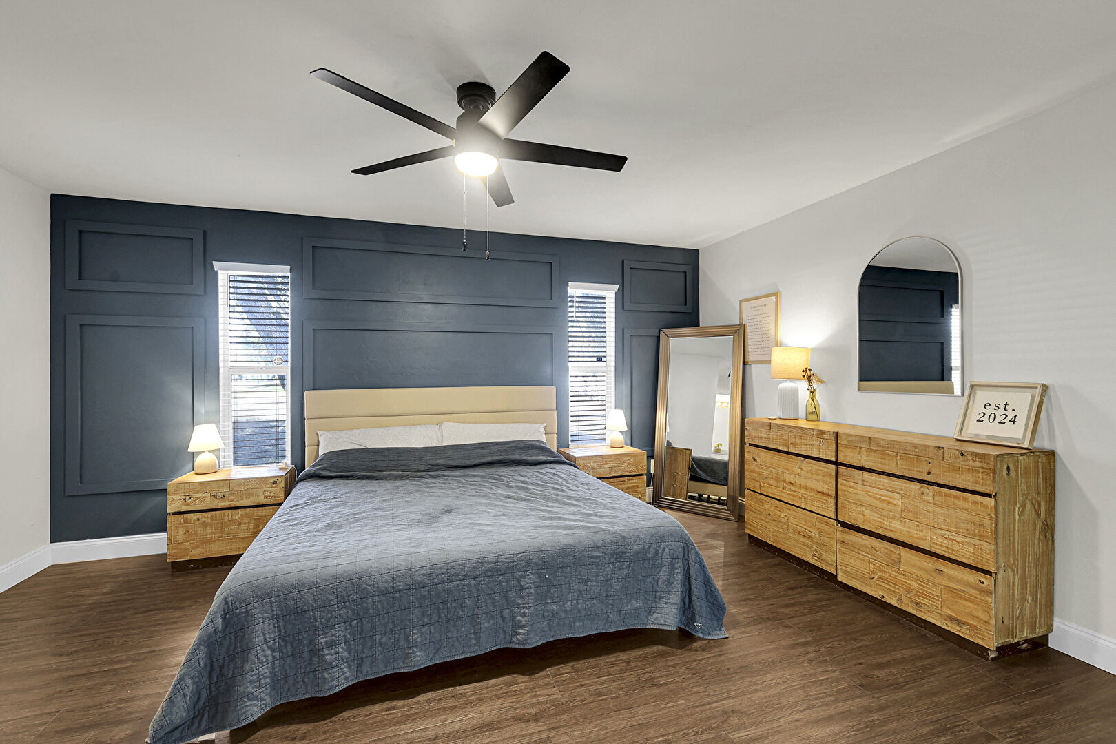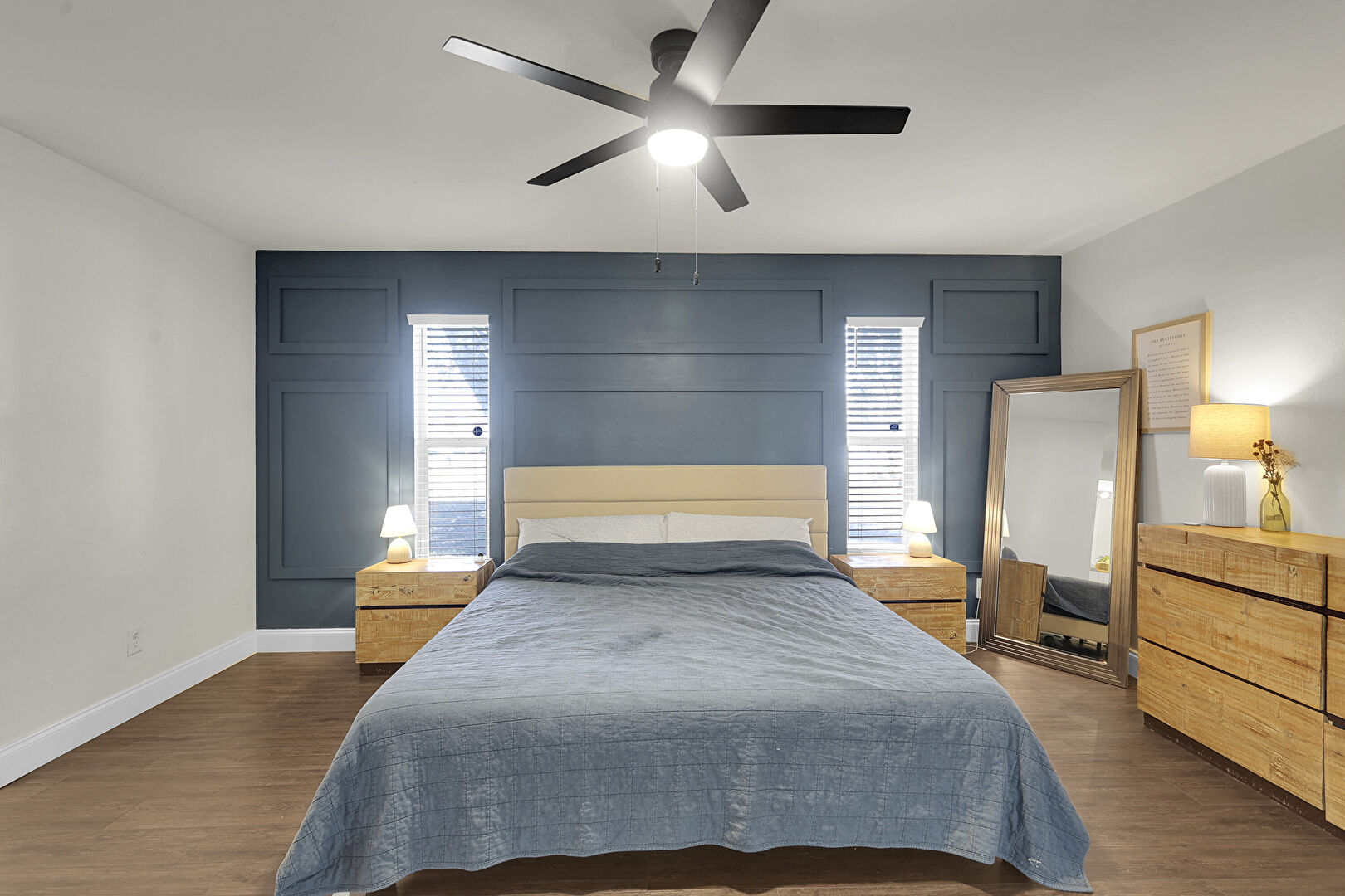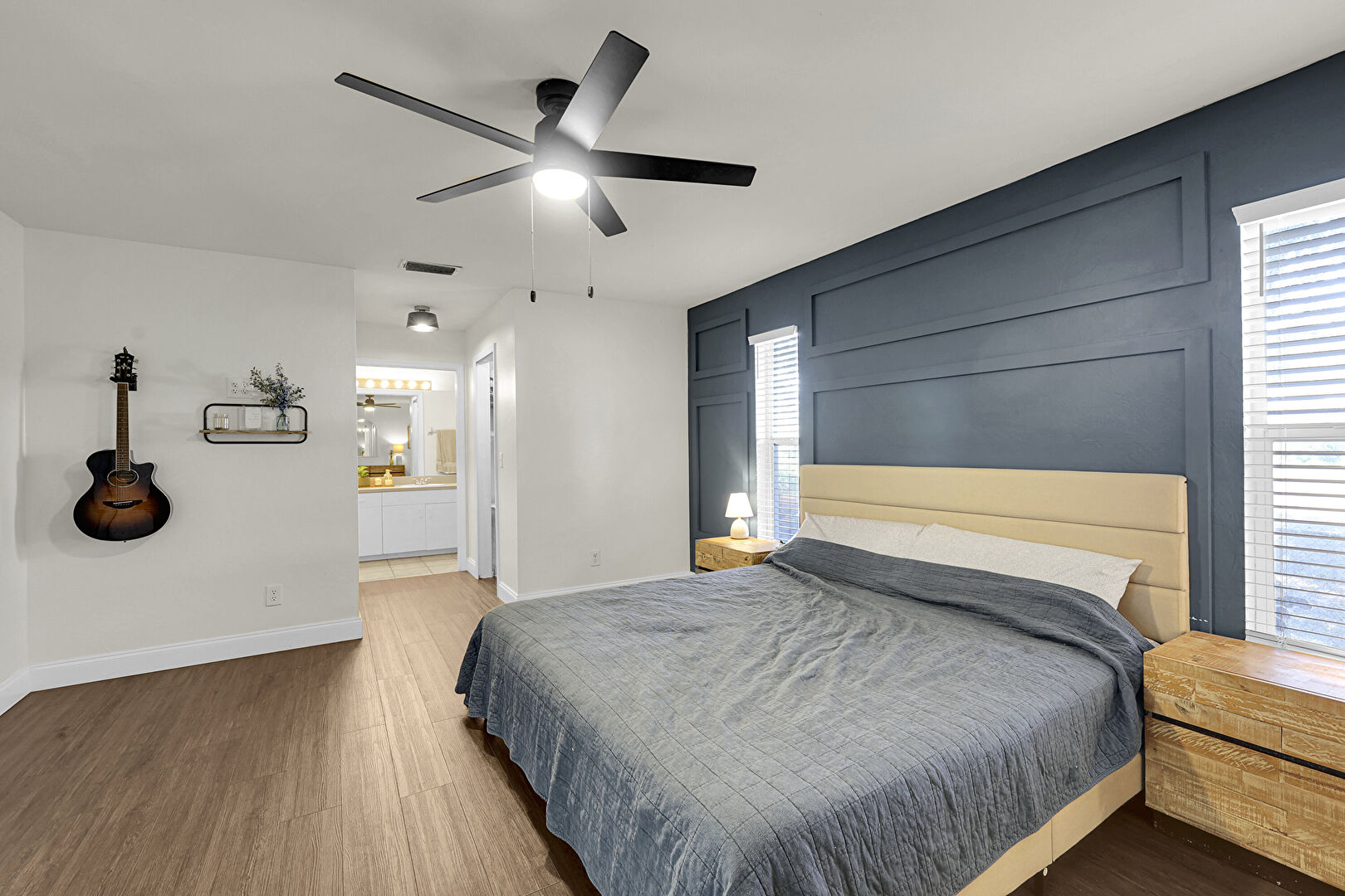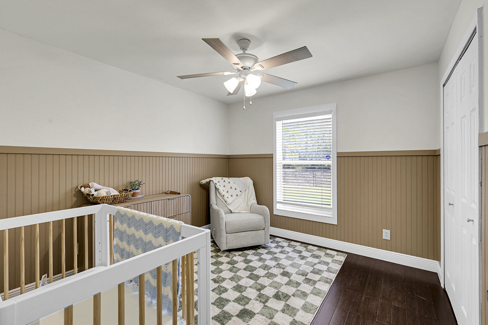 Accent Wall, Access To Exterior, Baseboards Wall, Ceiling Fan, Closet, Drywall, Natural Light, Nursery, Paneling Wall, Smoke Carbon Monoxide Detector, Vent, Wainscot Wall, Wood Finish Floor, Wood Wall, Accent Wall, Baseboards Wall, Ceiling Fan, Ensuite Bathroom, Natural Light, Wood Finish Floor